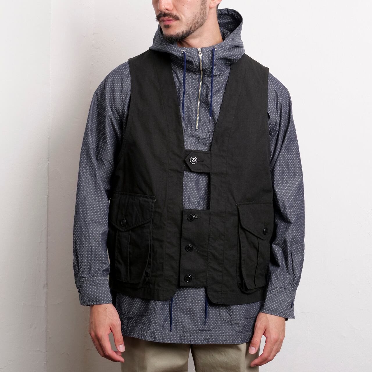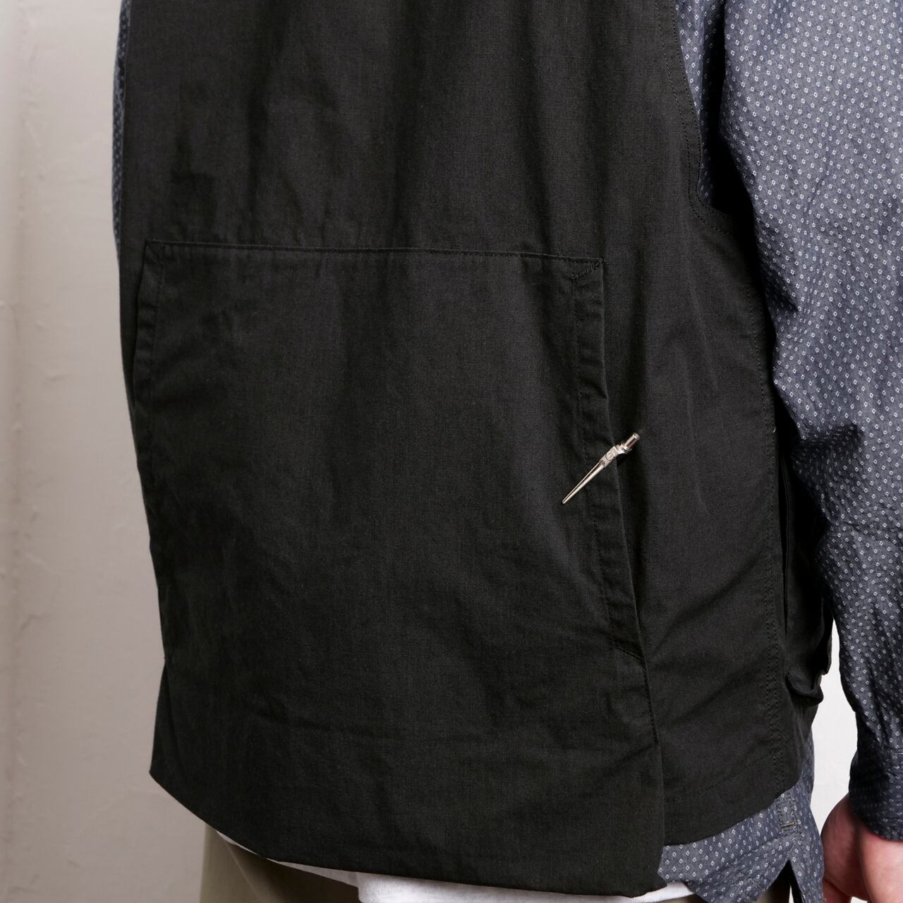 フロントの2タイプのタブが特徴的なハンティングベストがデザインソース。