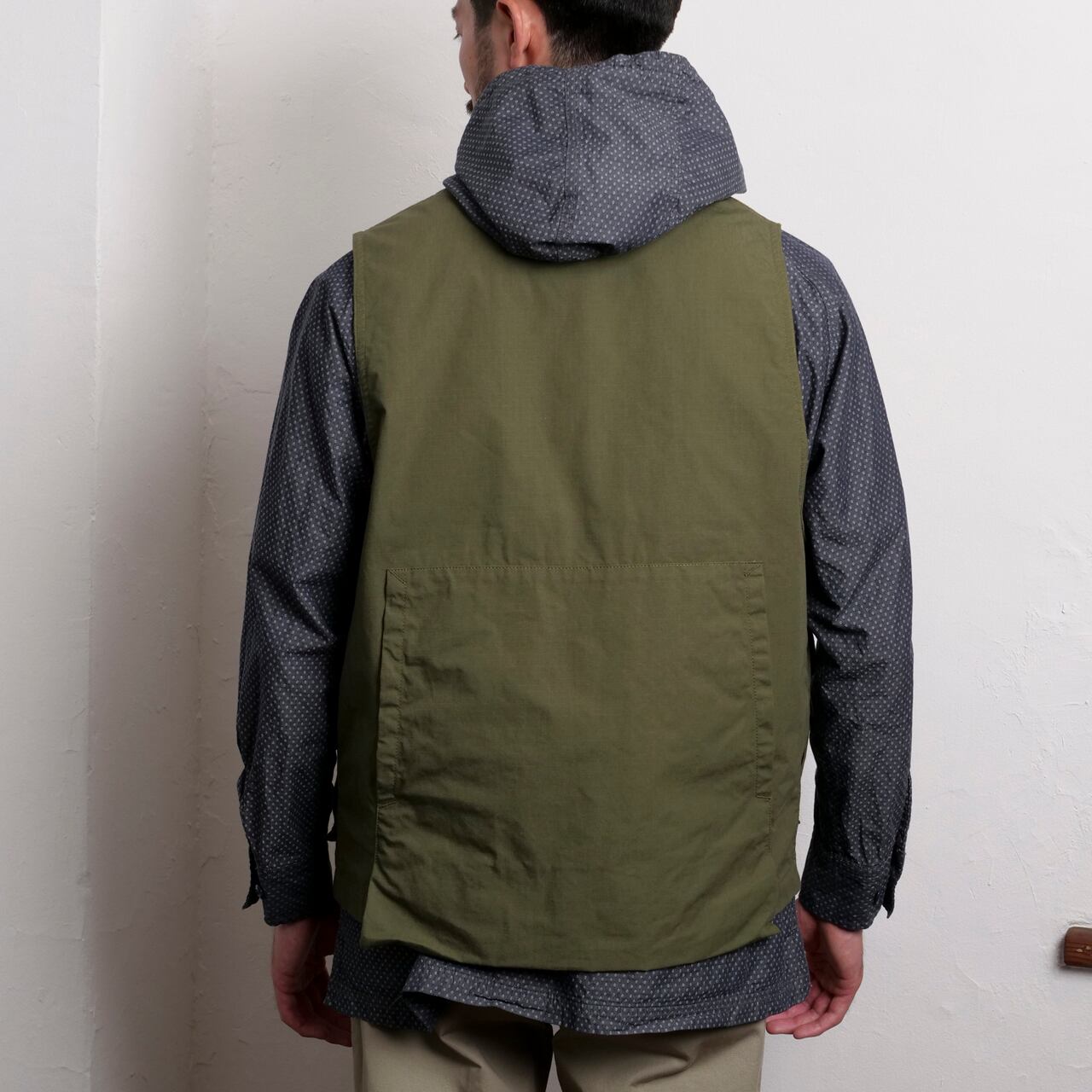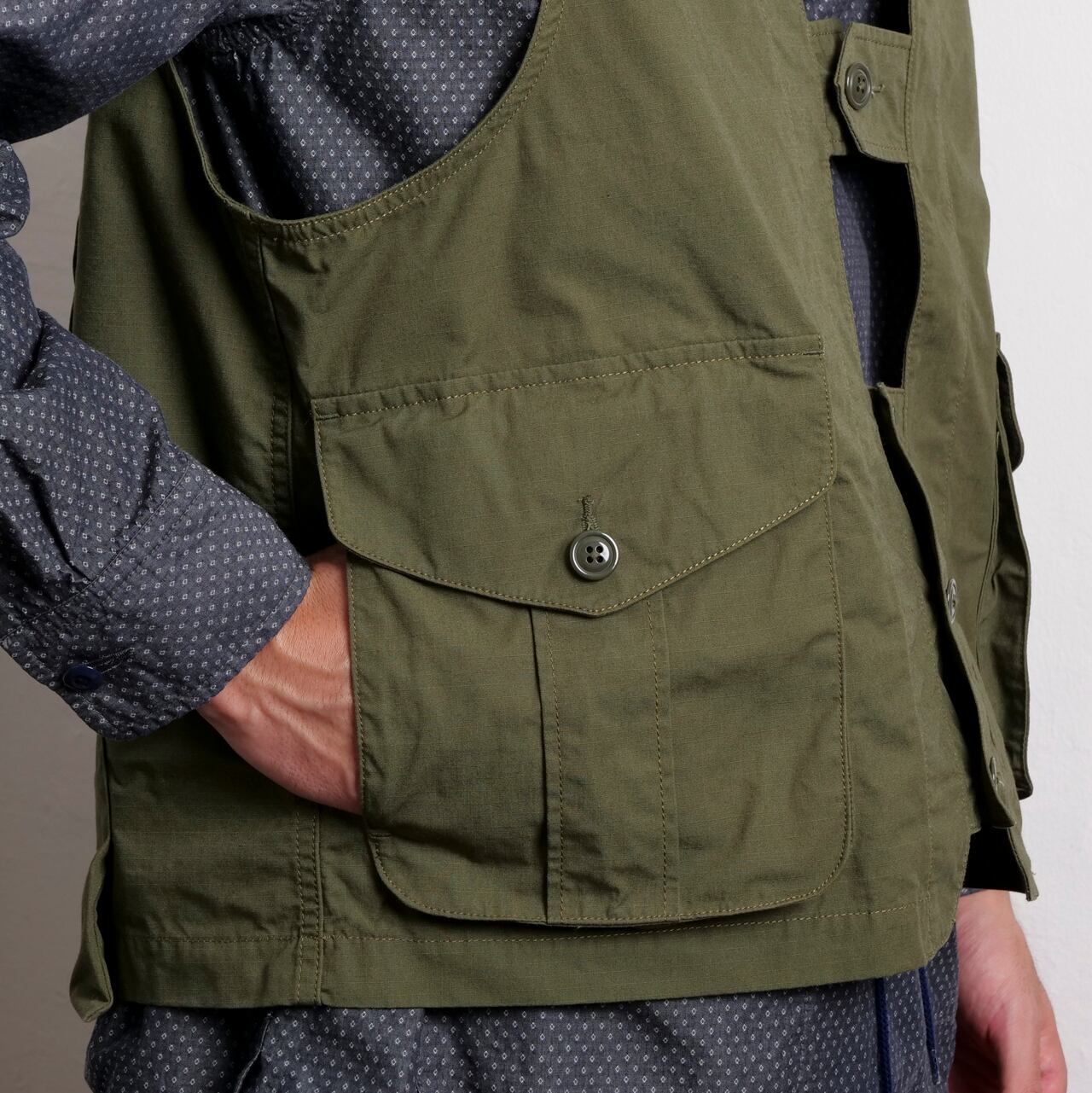 フロントの2タイプのタブが特徴的なハンティングベストがデザインソース。