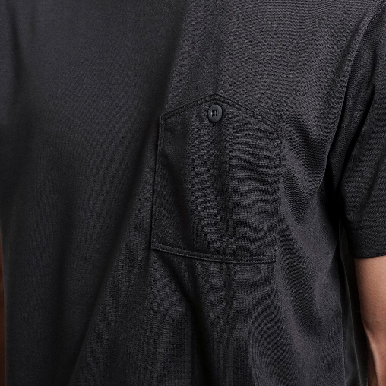 胸にはワークシャツに見られる山ポケットを配したデザインと光沢を抑えたコットンライクな見え方のため天然素材と合わせても違和感がなく着用可能。