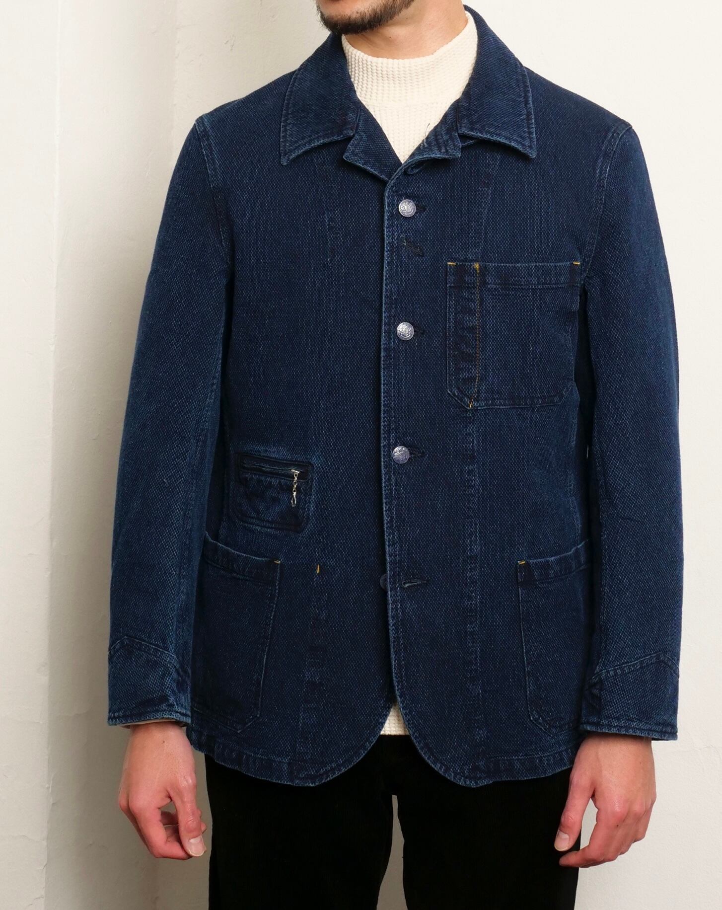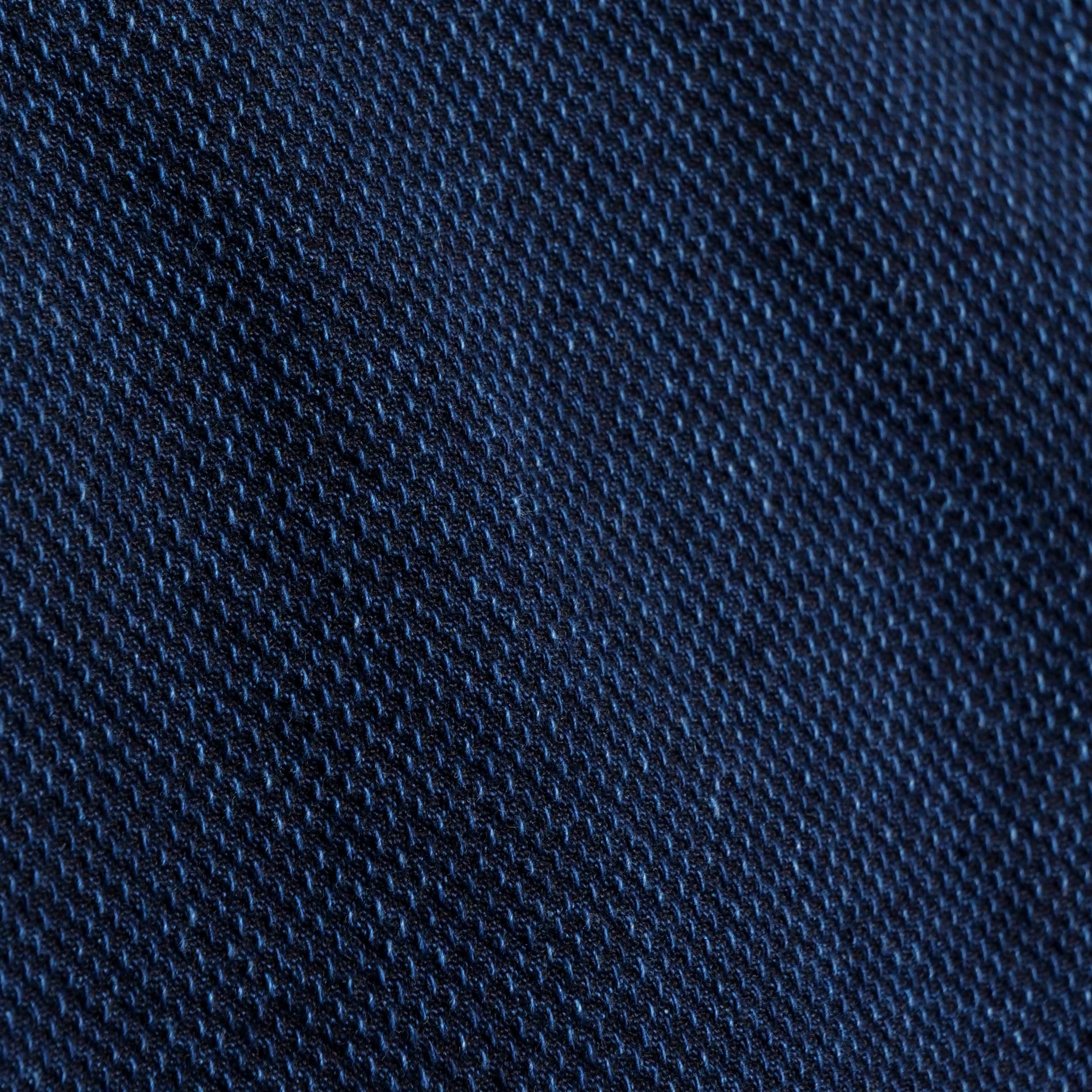 表地には素材としても定番のインディゴ染め 刺し子ドビーを使用し、ボールバイオ加工を施している。