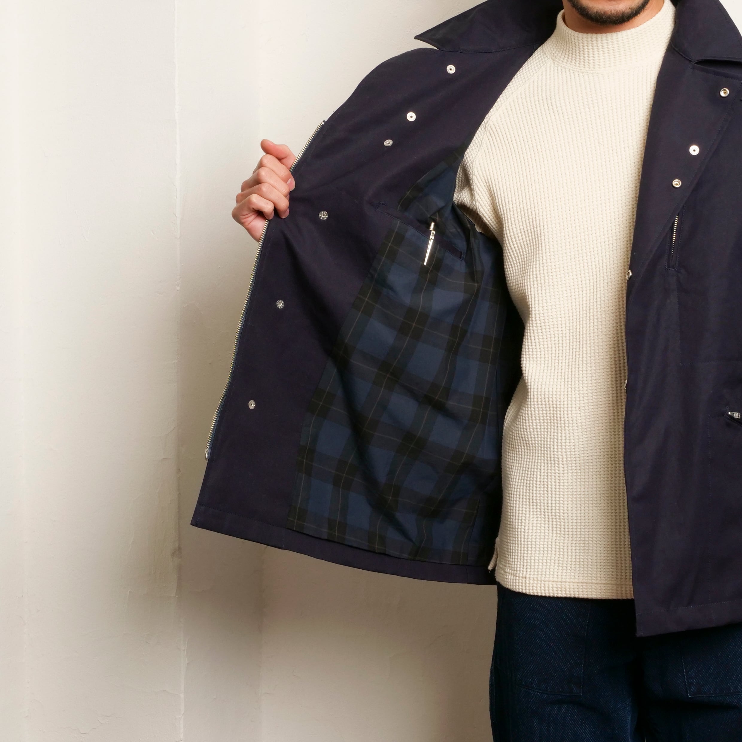 60s UKのサイクリングジャケットをイメージソースに同時代のモーターサイクルJKのディティールを掛け合わせた腰丈のアウター。