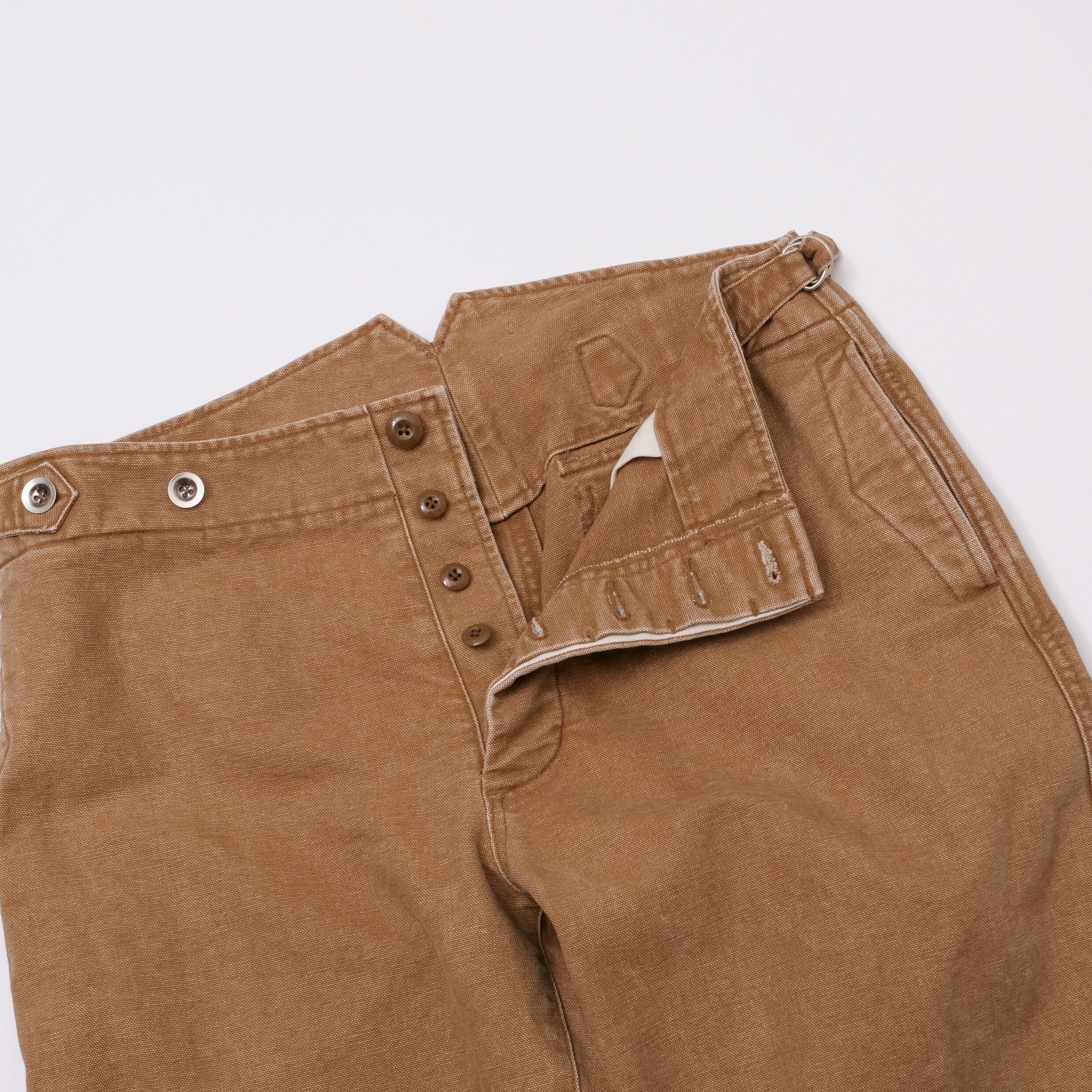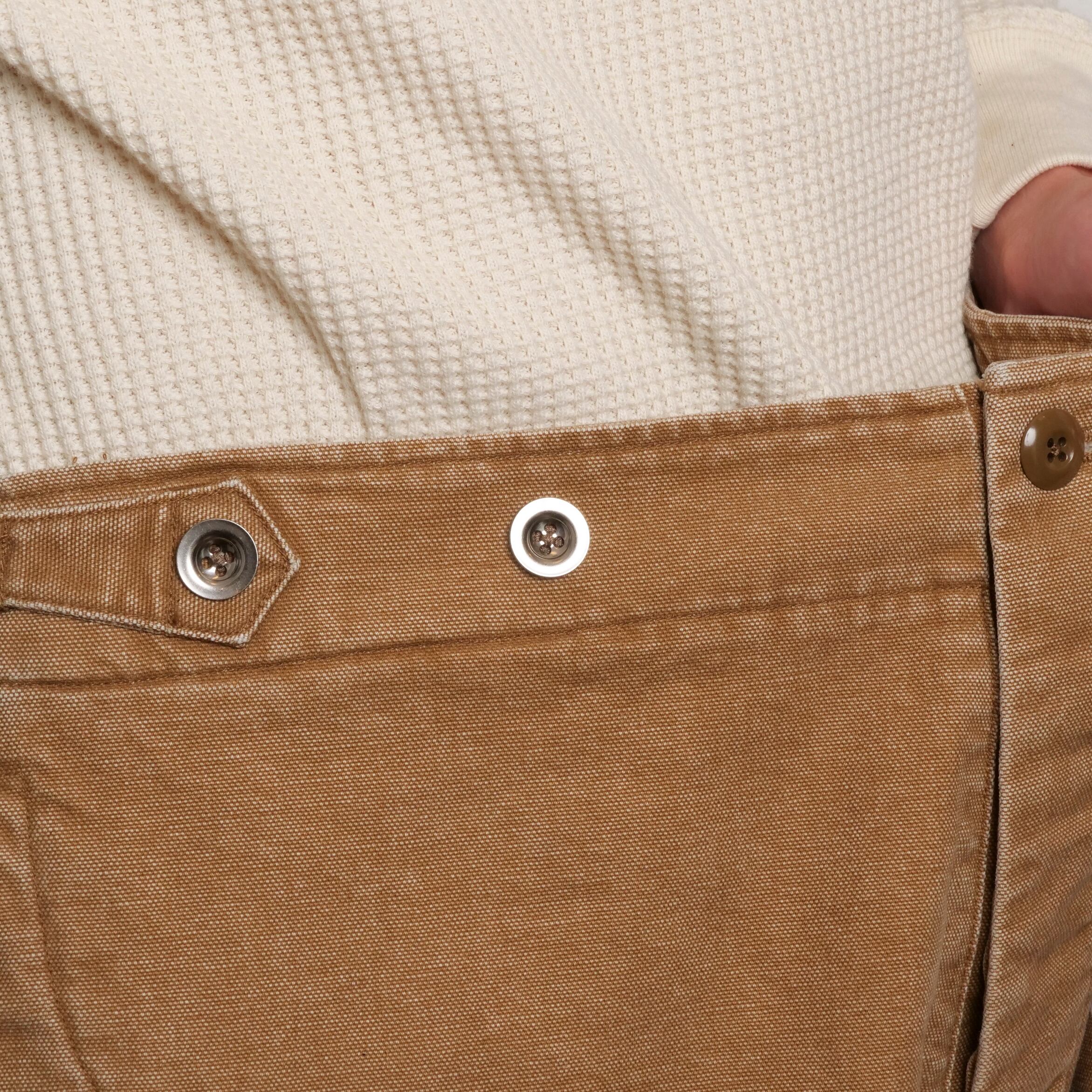 染料技術に乏しかった頃の中まで染まらないダックをリプロした中白素材を使用し、製品にてストーンバイオ加工を施し履き込んだような風合いを持つ。