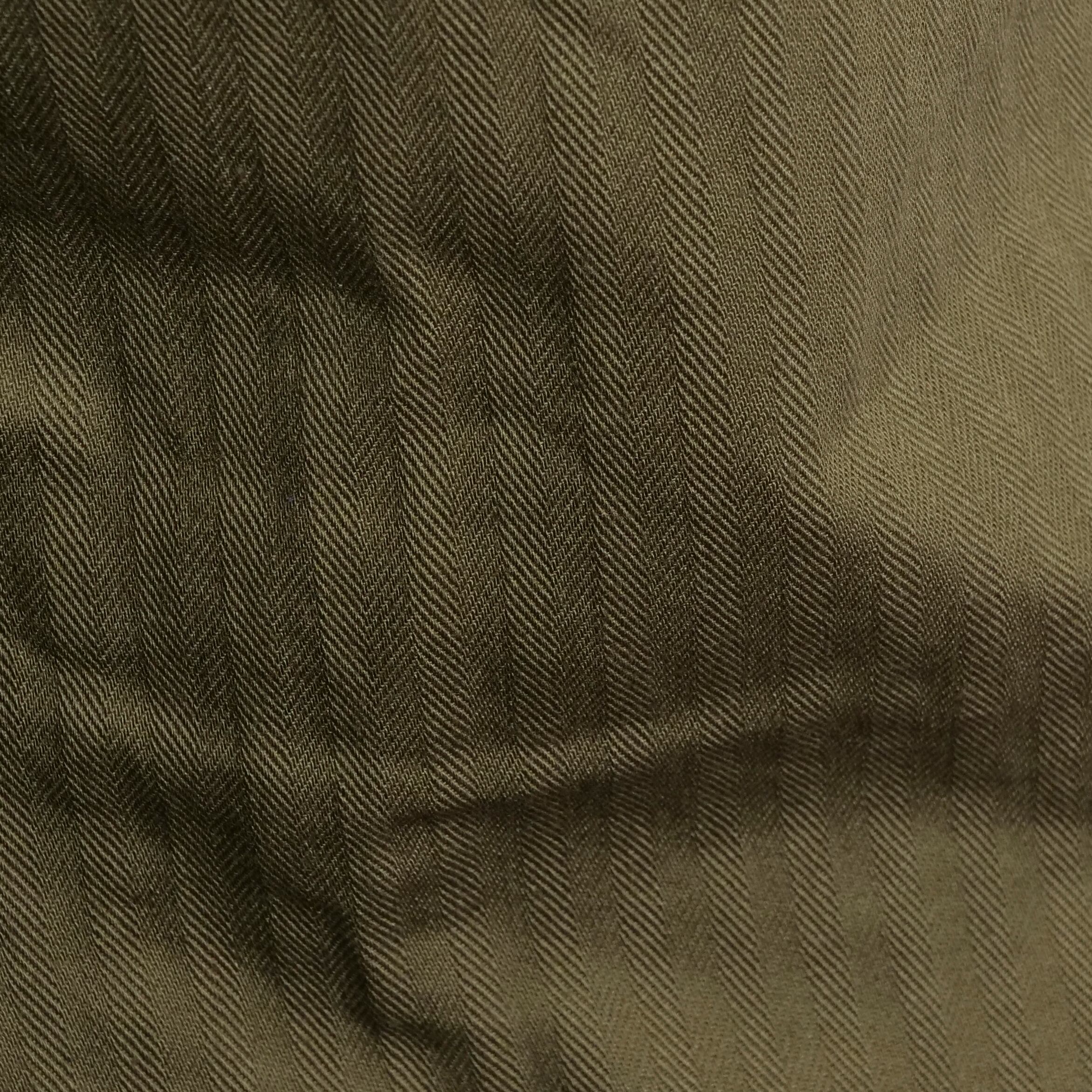 素材はオーガニックコットンの強撚糸で織り上げたUS ARMYのそれをリプロした超高密度のヘリンボーンツイル。