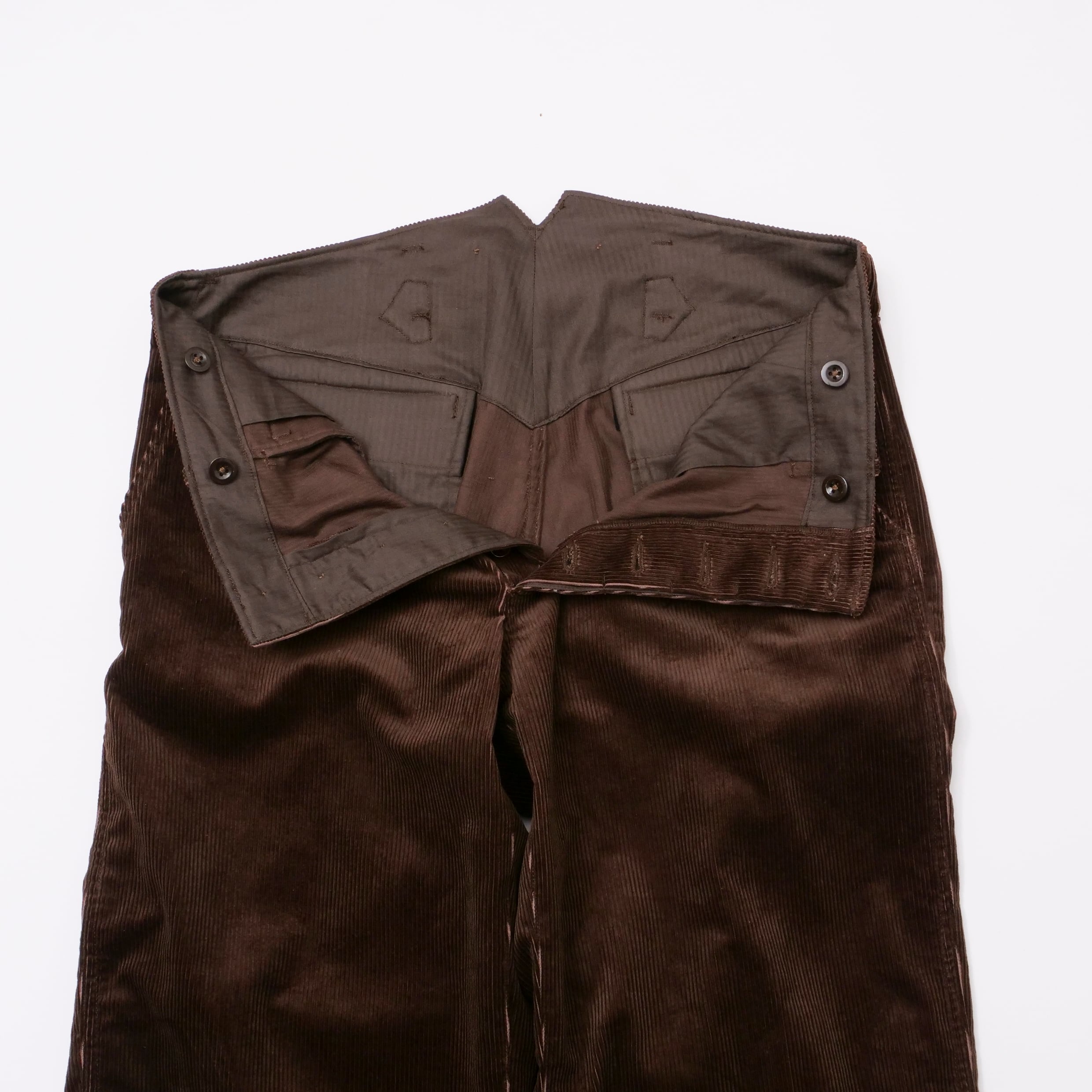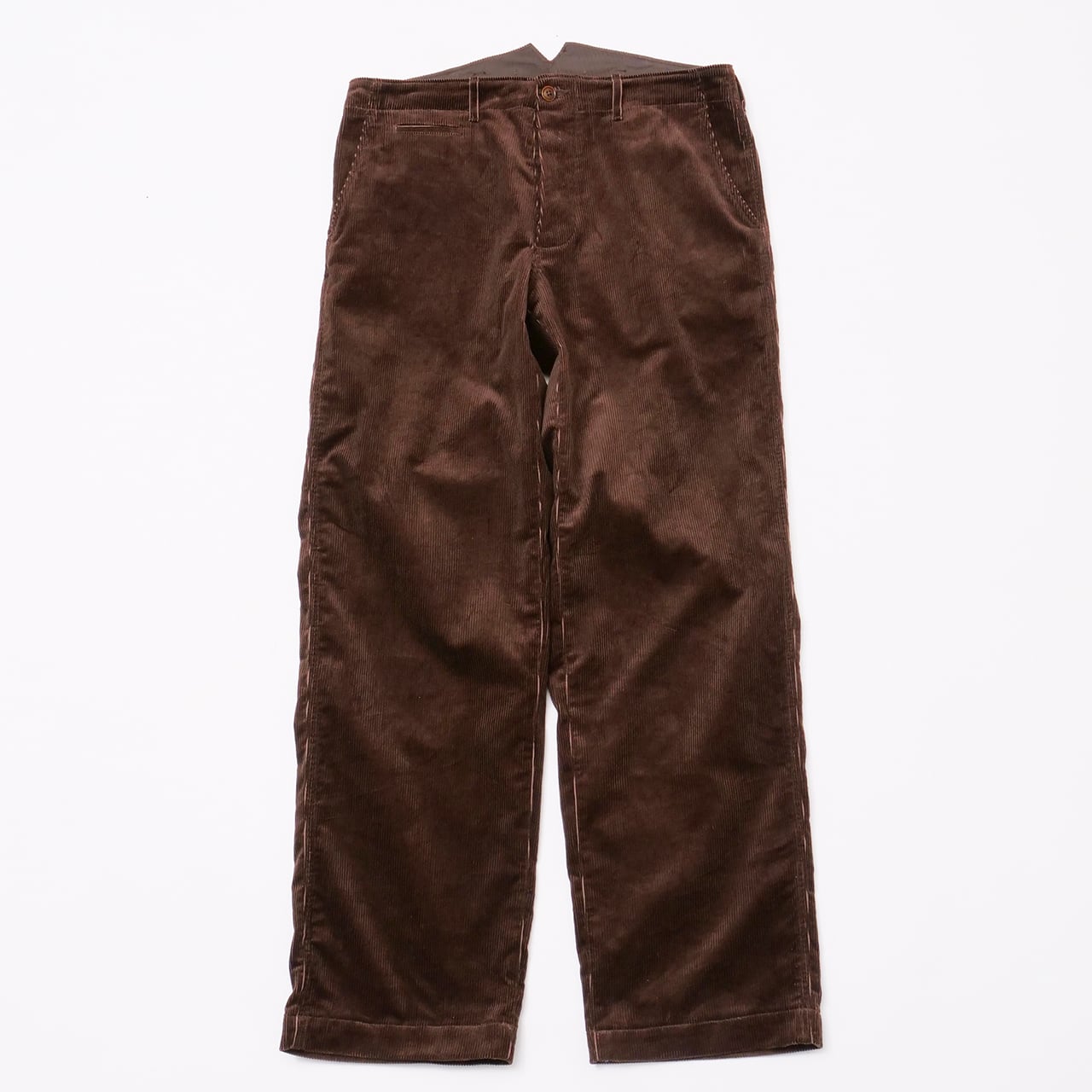 US ARMYのM45カーキのフロントに同時代のワークパンツの後身スワローテールをかけ合わせたゆったりとしたテーパードトラウザース。