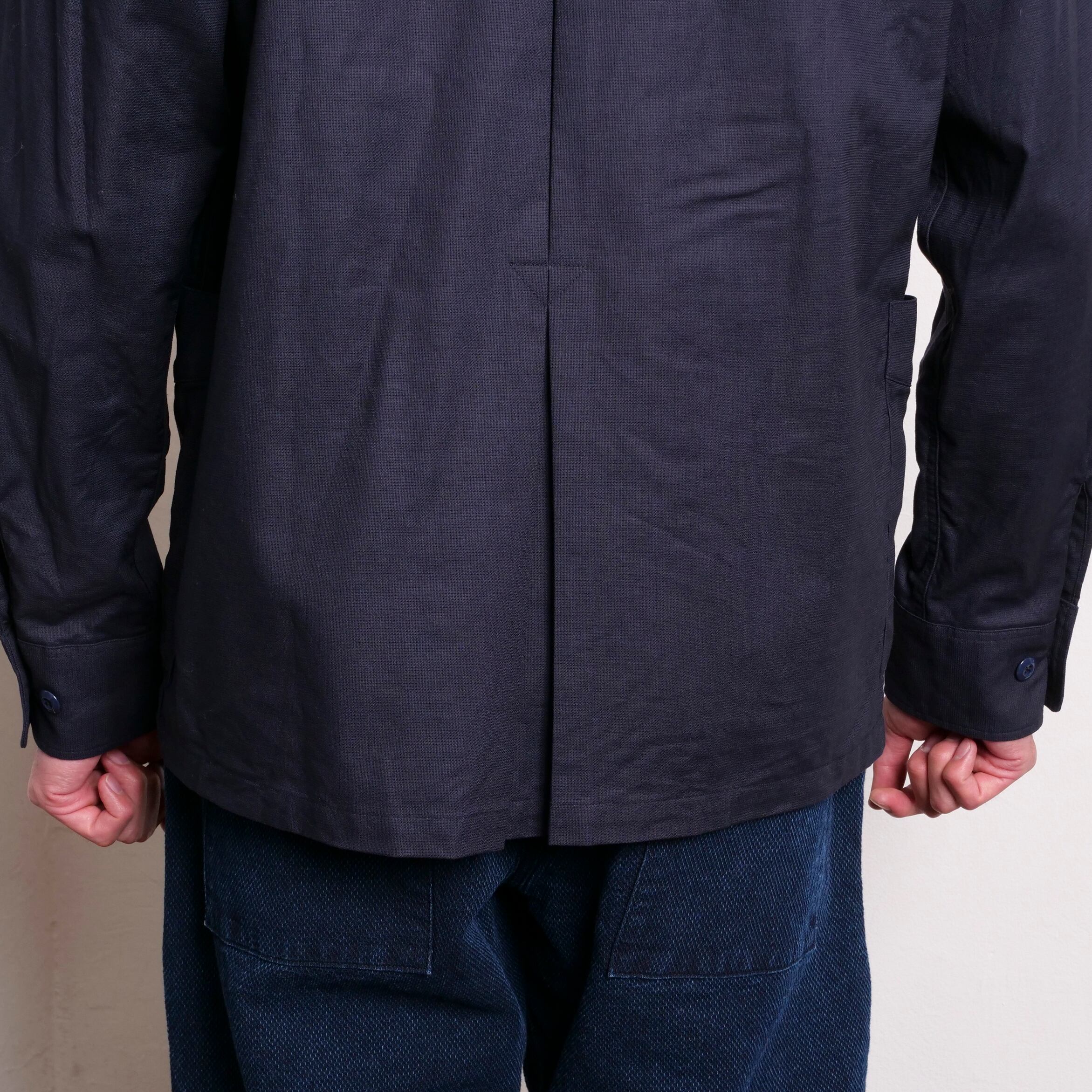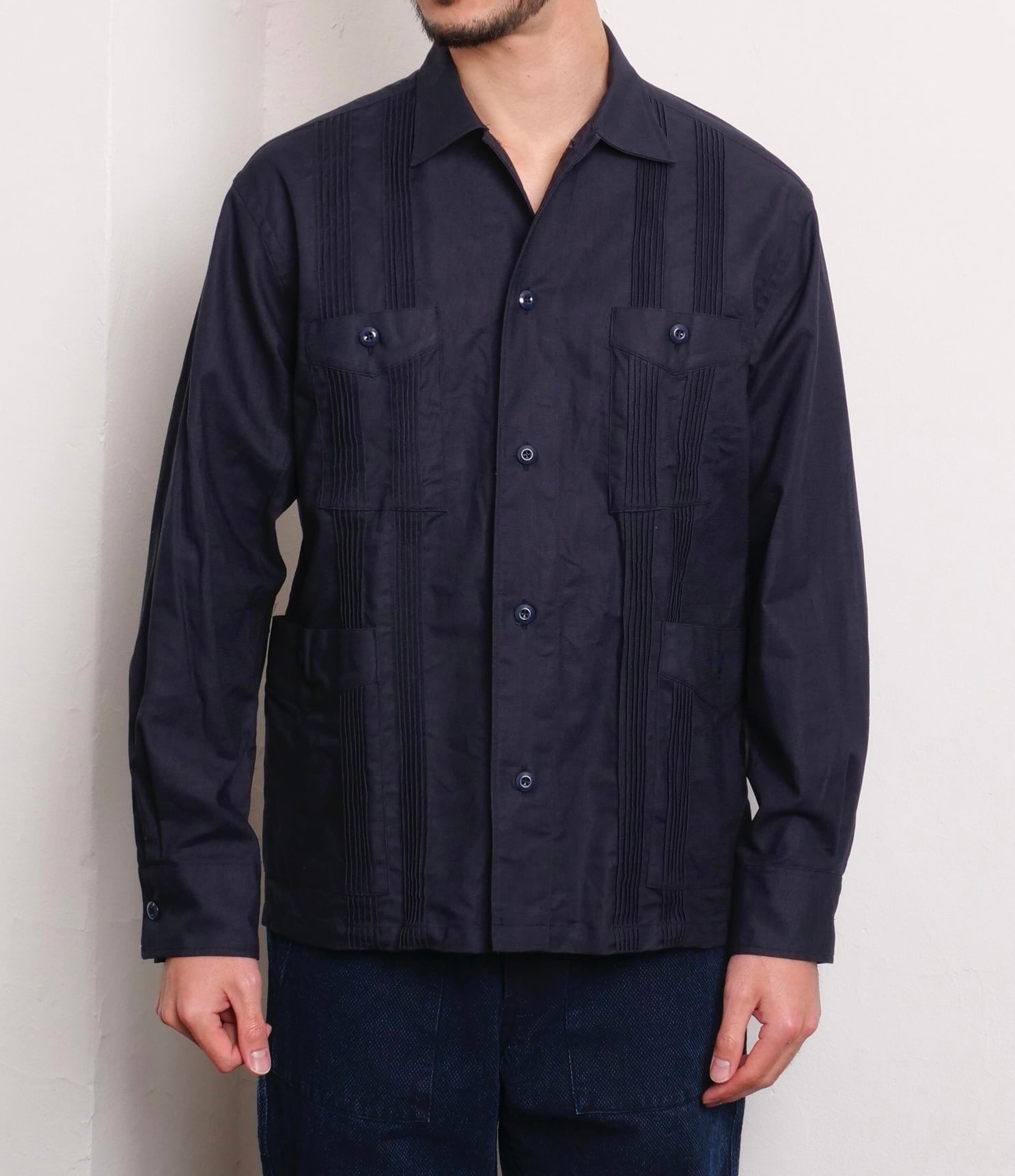 オープンカラー、4つポケット、そして象徴的なピンタックを叩いた身頃のキューバシャツをイメージソースとした長袖シャツジャケット。