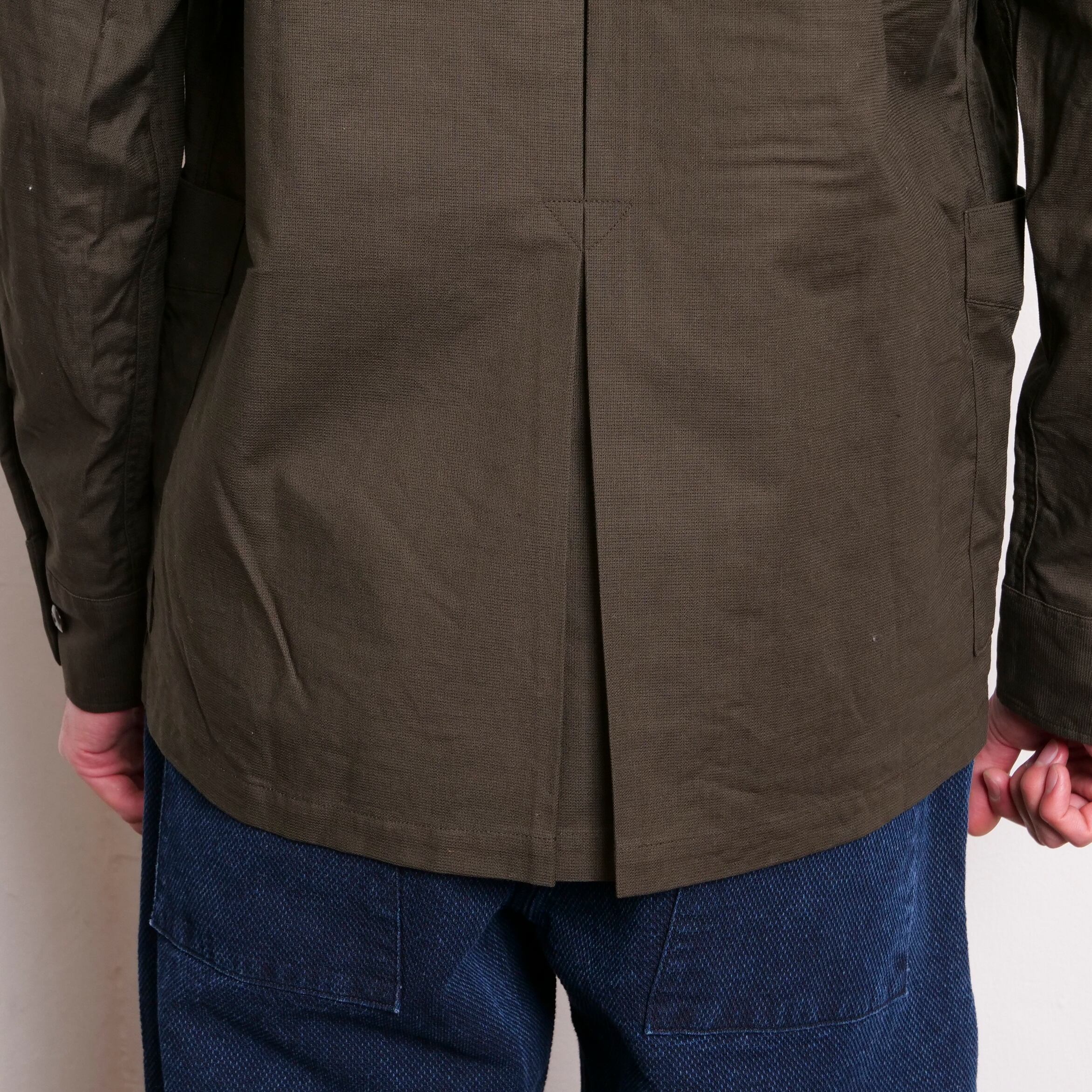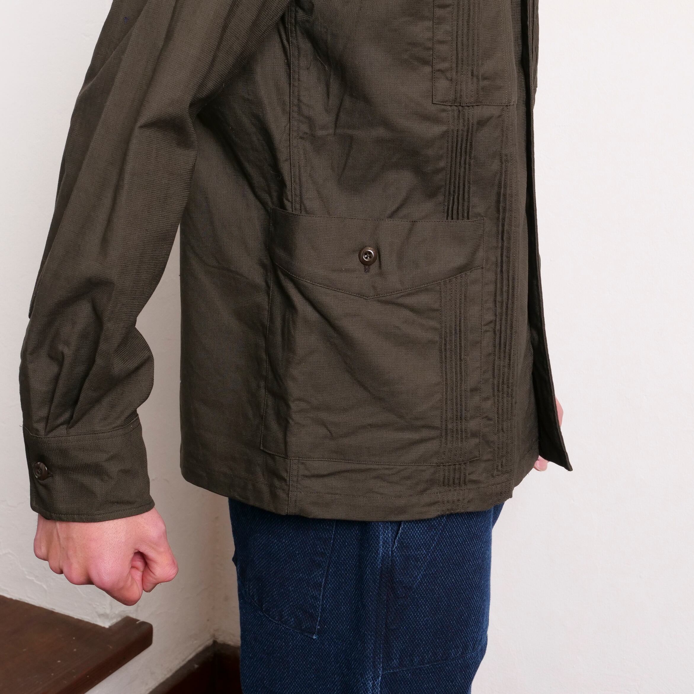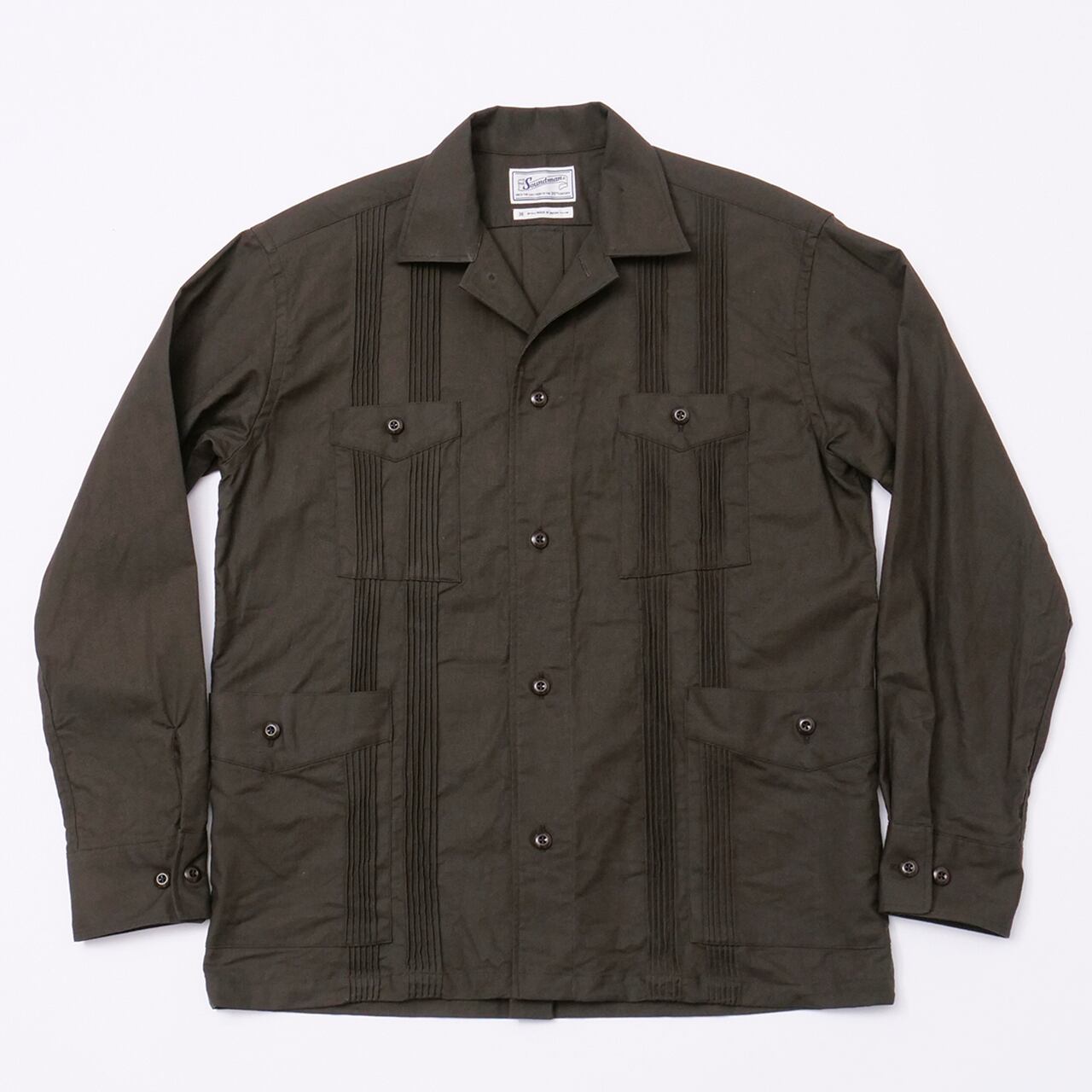 オープンカラー、4つポケット、そして象徴的なピンタックを叩いた身頃のキューバシャツをイメージソースとした長袖シャツジャケット。