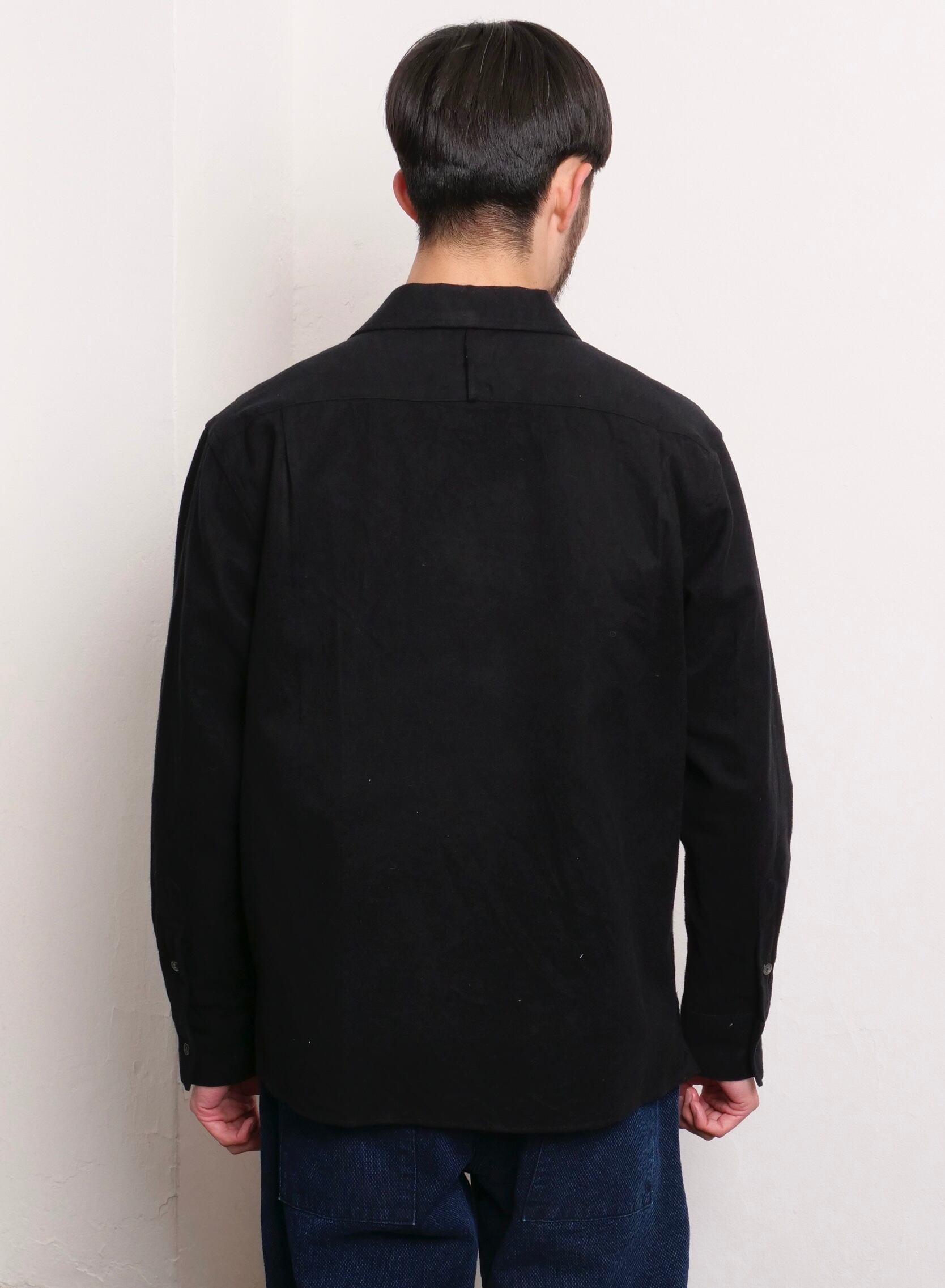 イギリスをはじめとするヨーロッパのレジャーシャツに見られるシャークカラーとボックスプリーツのサファリポケットを合わせた一枚。
