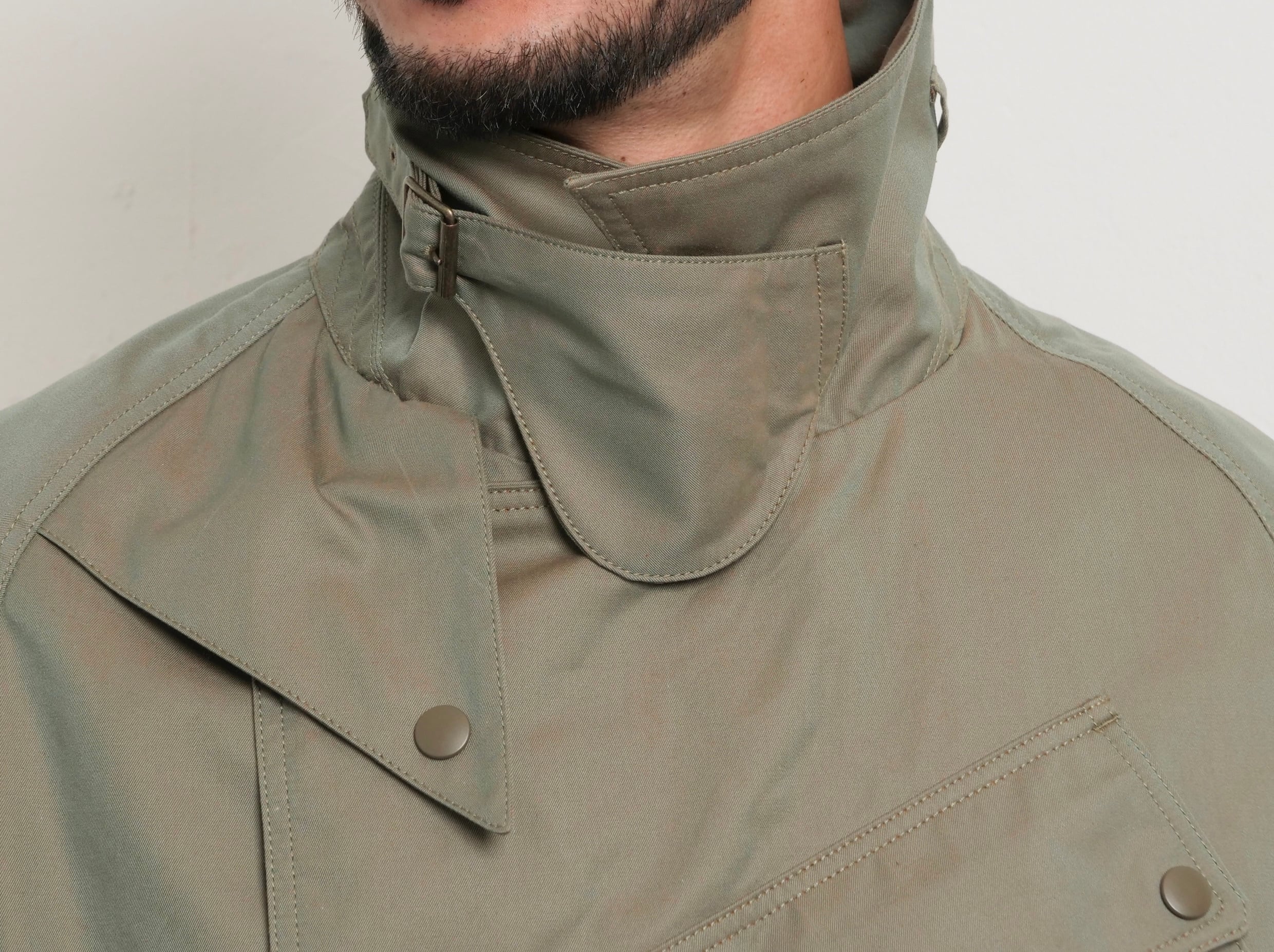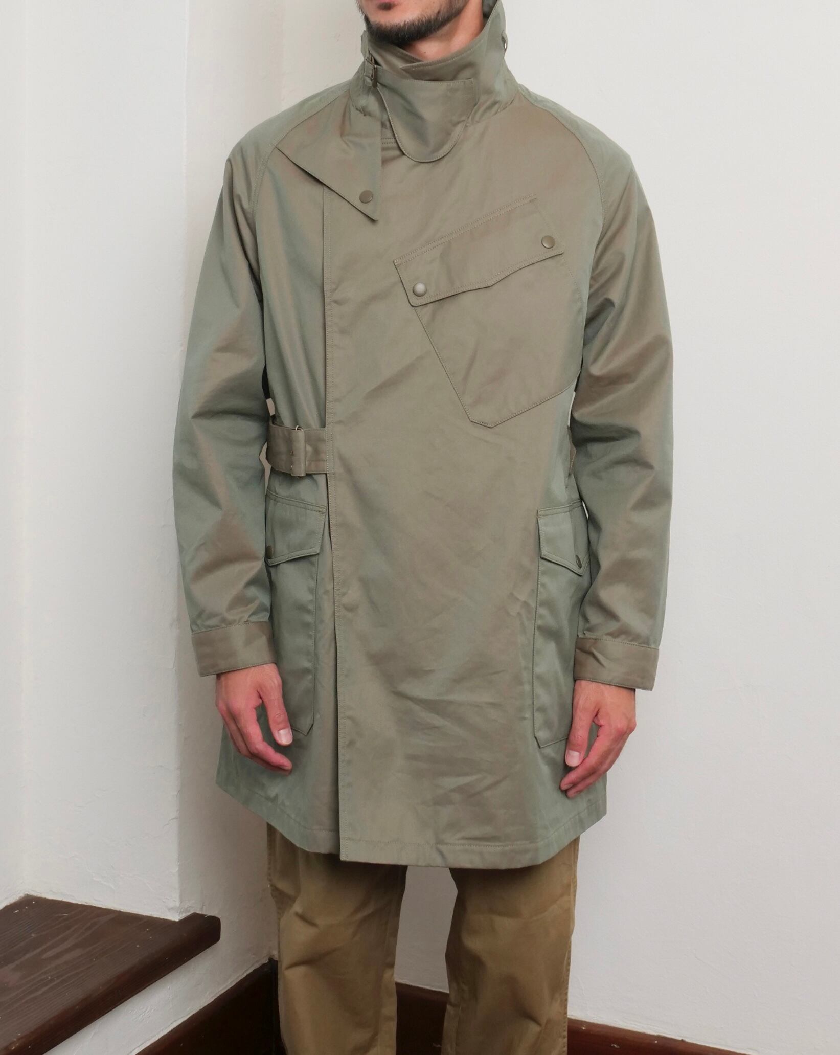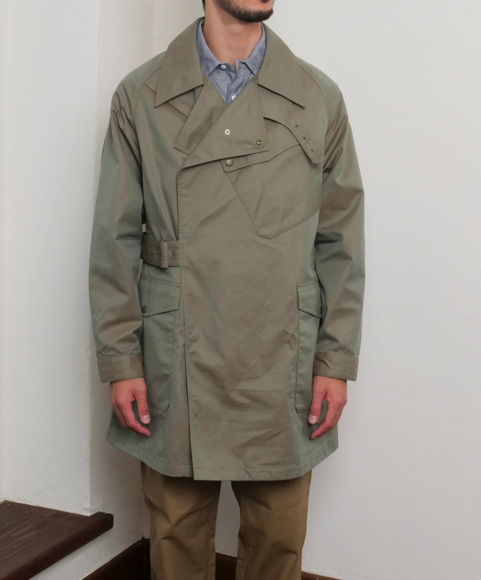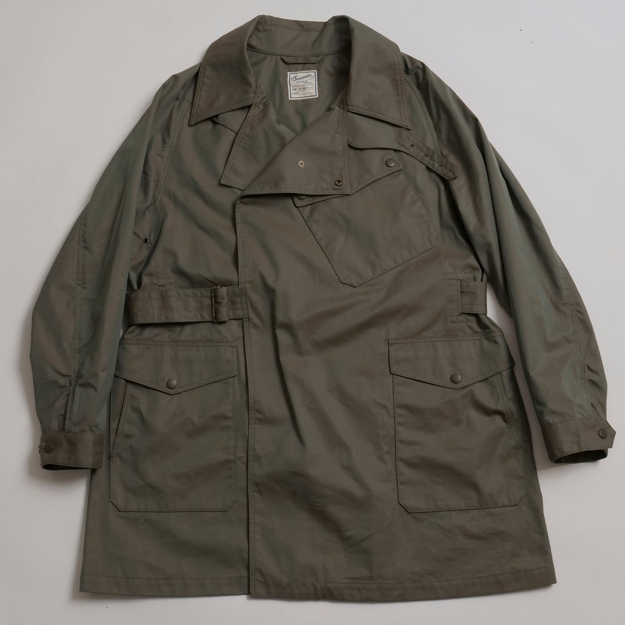 ブリティッシュアーミーのデスパッチモーターサイクルコートをモチーフに街着としてアレンジした3シーズン対応のショートコート。一重仕立てで軽く羽織れる仕様。