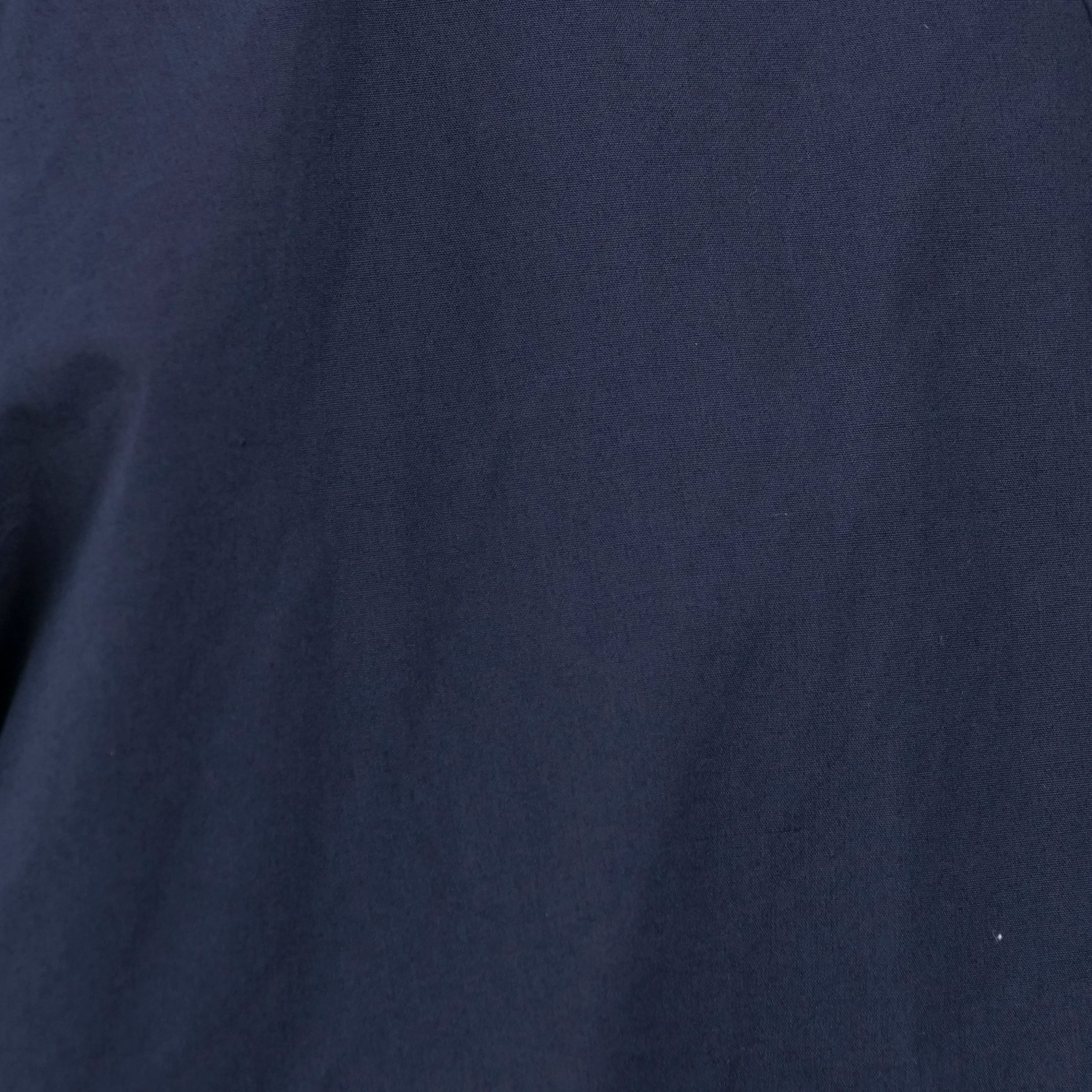 50sブリティッシュアーミーの熱帯地向けのトロピカルブッシュジャケットをデザインソースとした1着。センターボックスプリーツ仕様にリデザイン。また本来表につくベルトは取払い 内側のドローコードでアジャスト。また腰ポケットをハンドウォーマーつきとした。素材は上質なスーピマコットンを 使用した薄手のタイプライタークロスを使用。イギリスワークミリタリーに見られる裏からの補強など多くのステッチが入り、あえてパッカリングが出るような仕様としている。夏の羽織りに最適な1着。