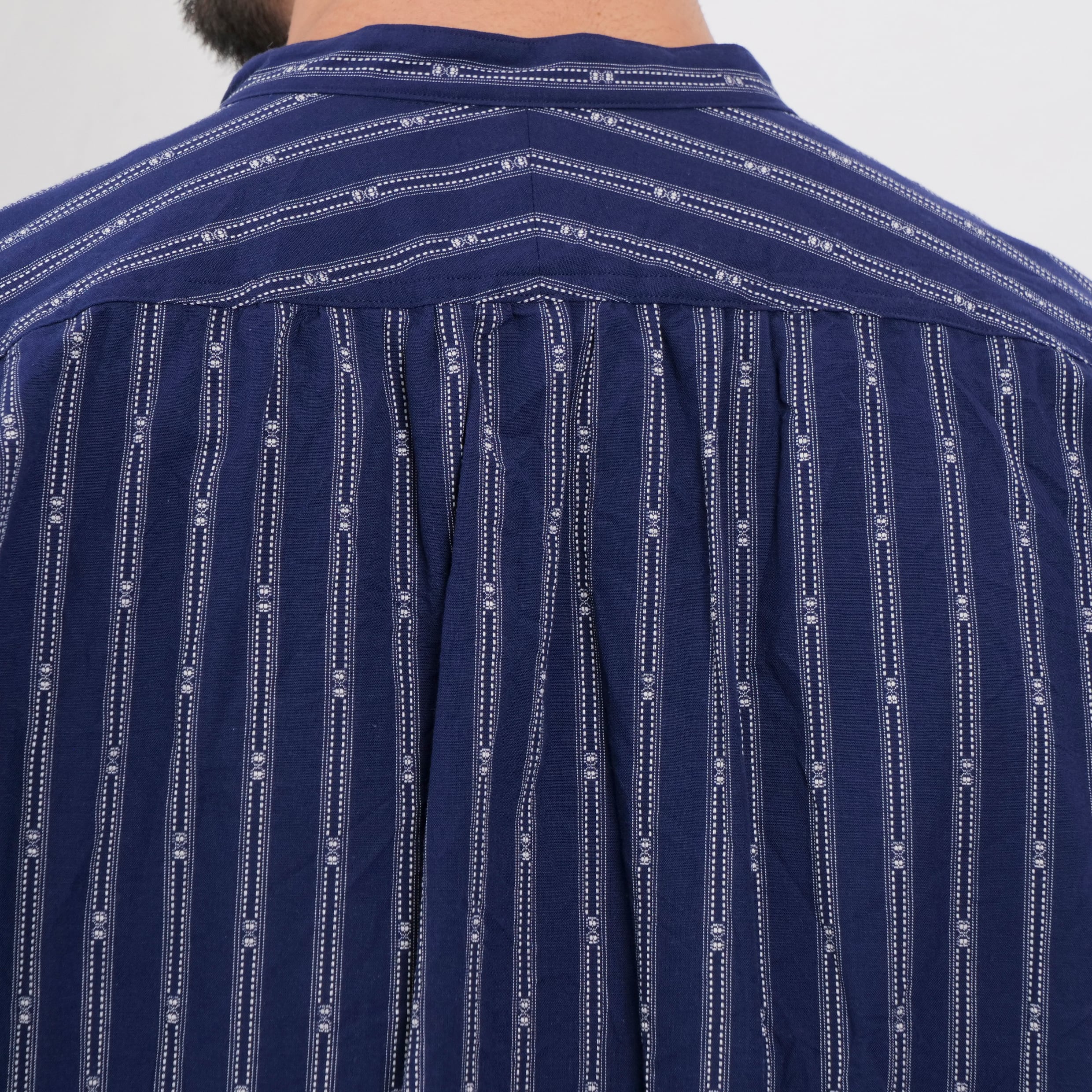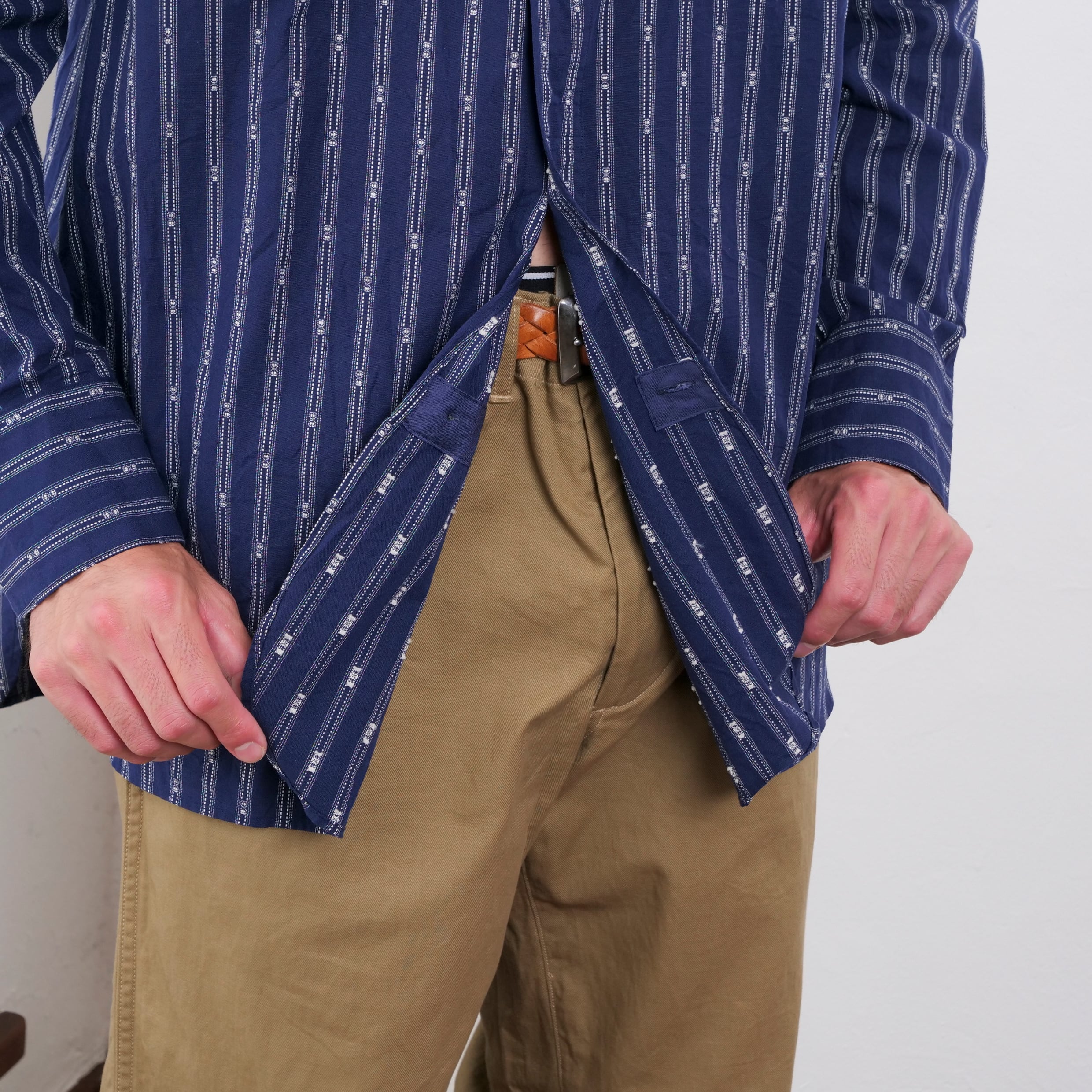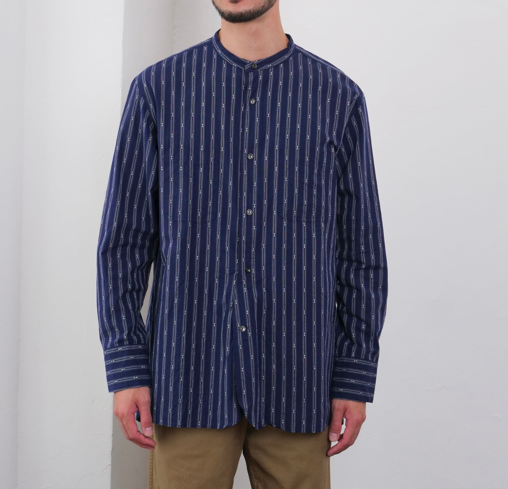 ハーフプラケットなどクラシックな要素が詰まった定番バンドカラーワークシャツ。素材はネイティブ柄をイメージしたカットドビー素材を使用。