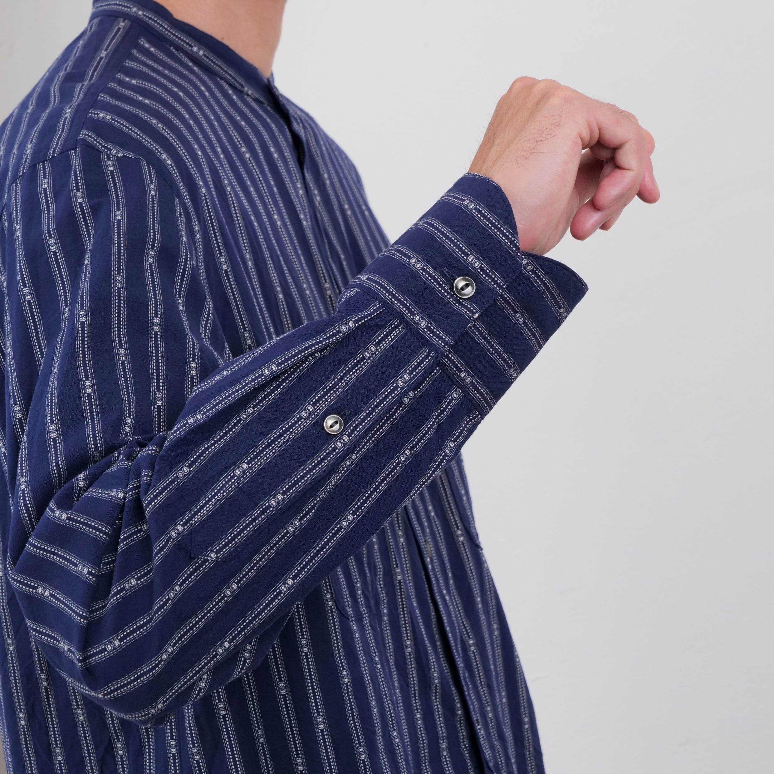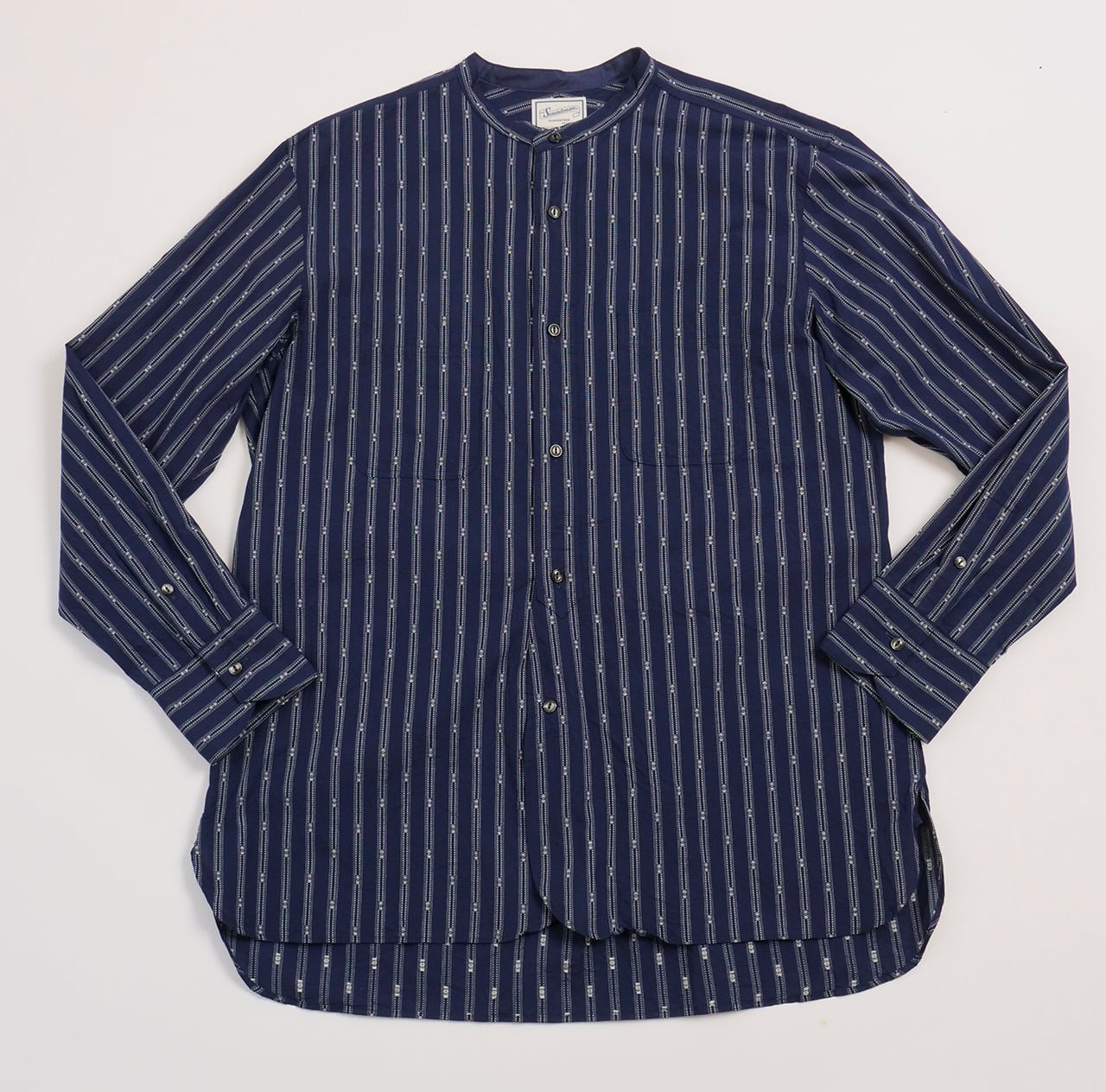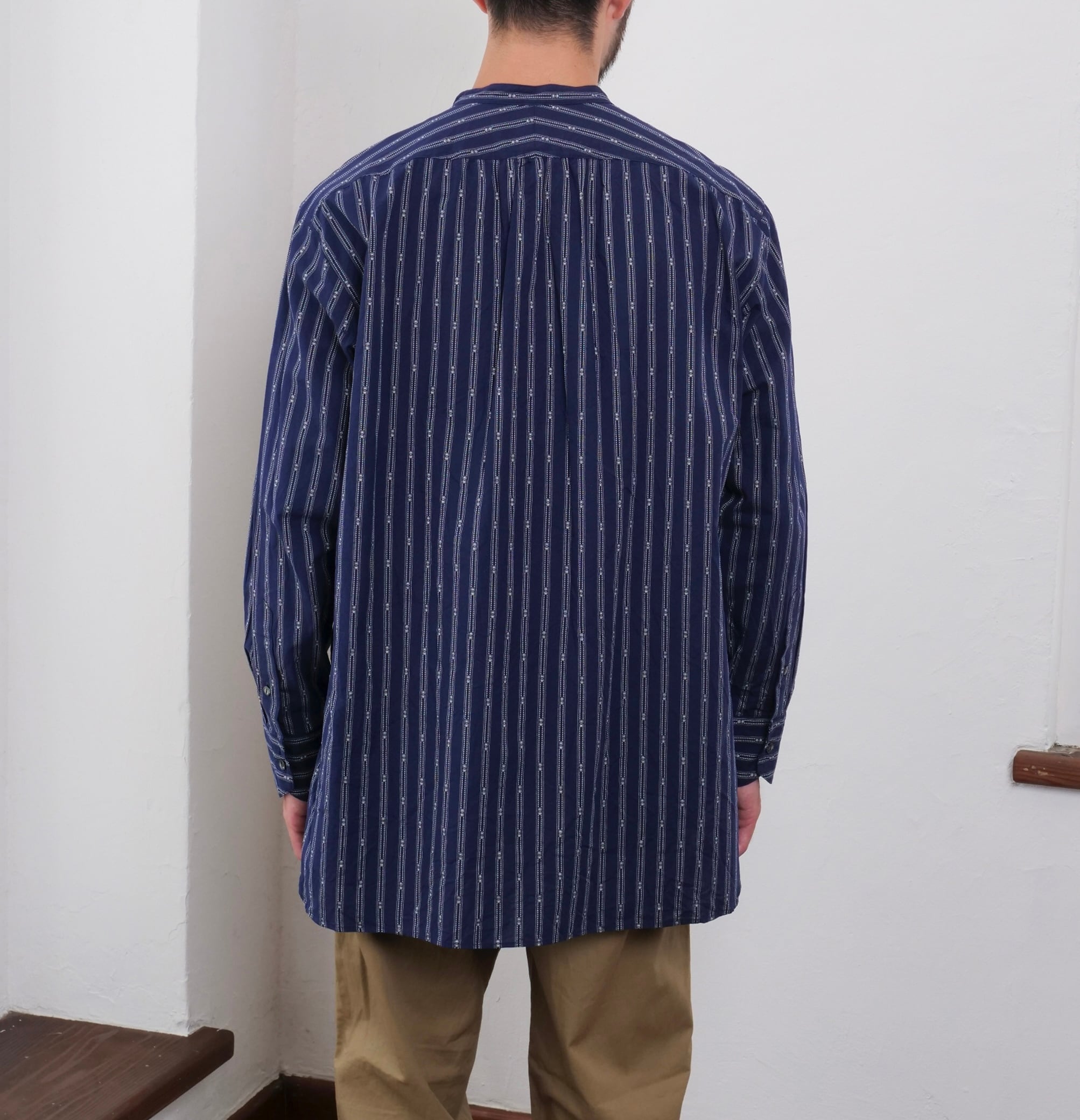 ハーフプラケットなどクラシックな要素が詰まった定番バンドカラーワークシャツ。素材はネイティブ柄をイメージしたカットドビー素材を使用。