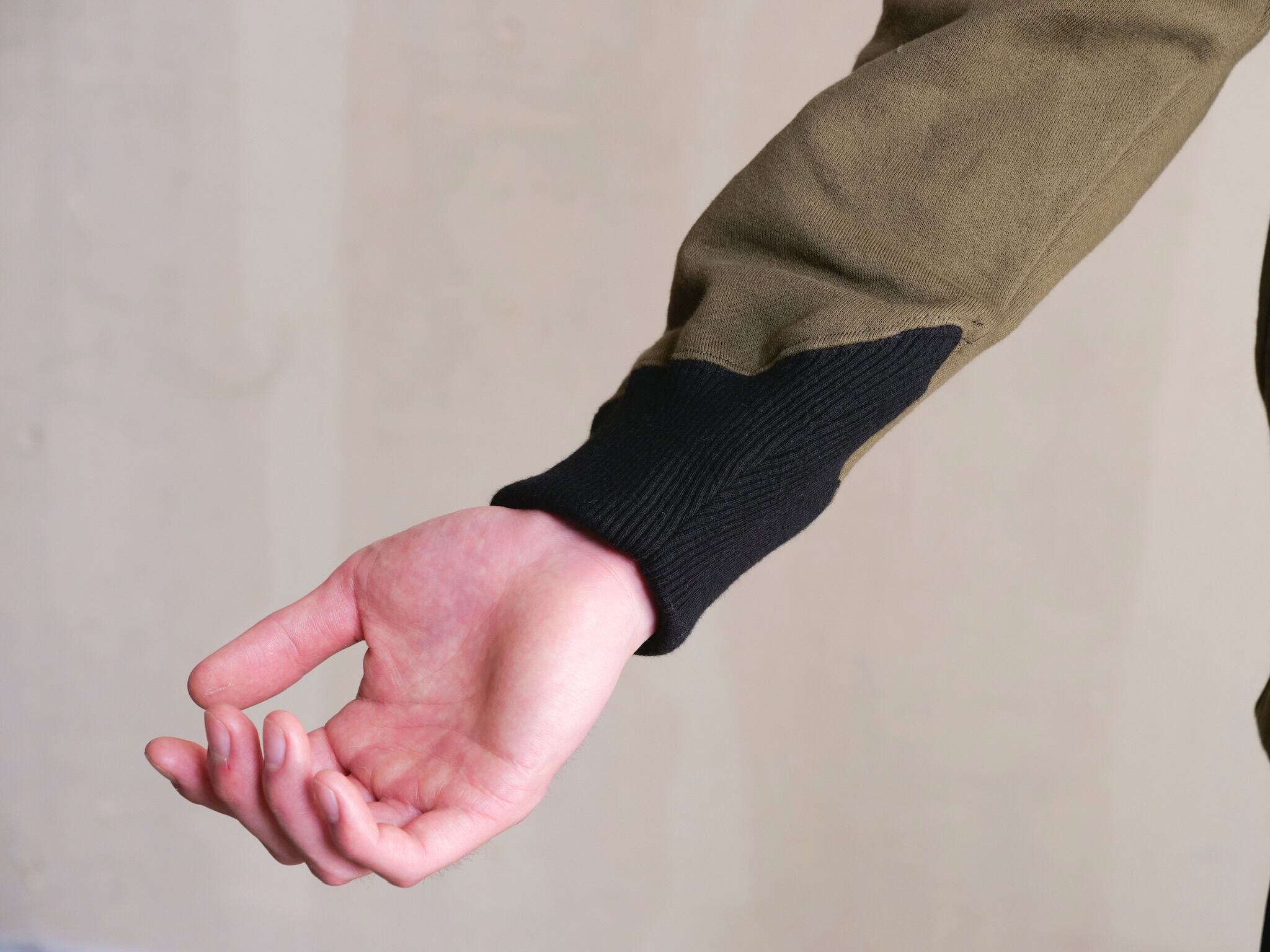 衿と袖はブラックに染色したヘビーなコットンテレコを使用し