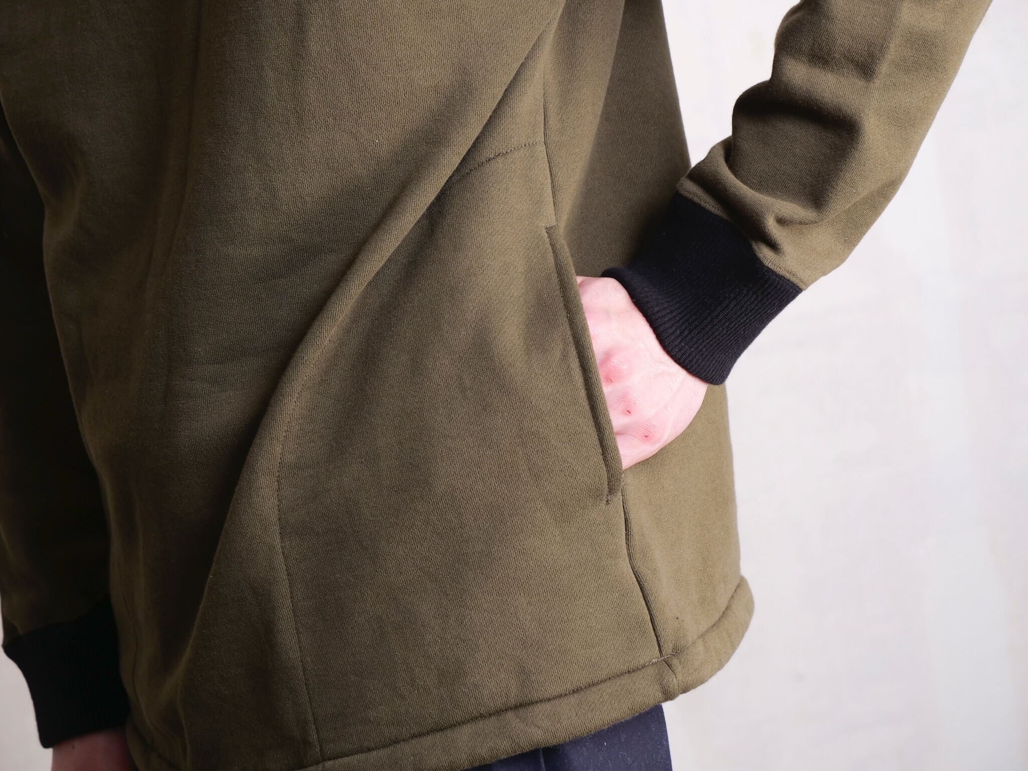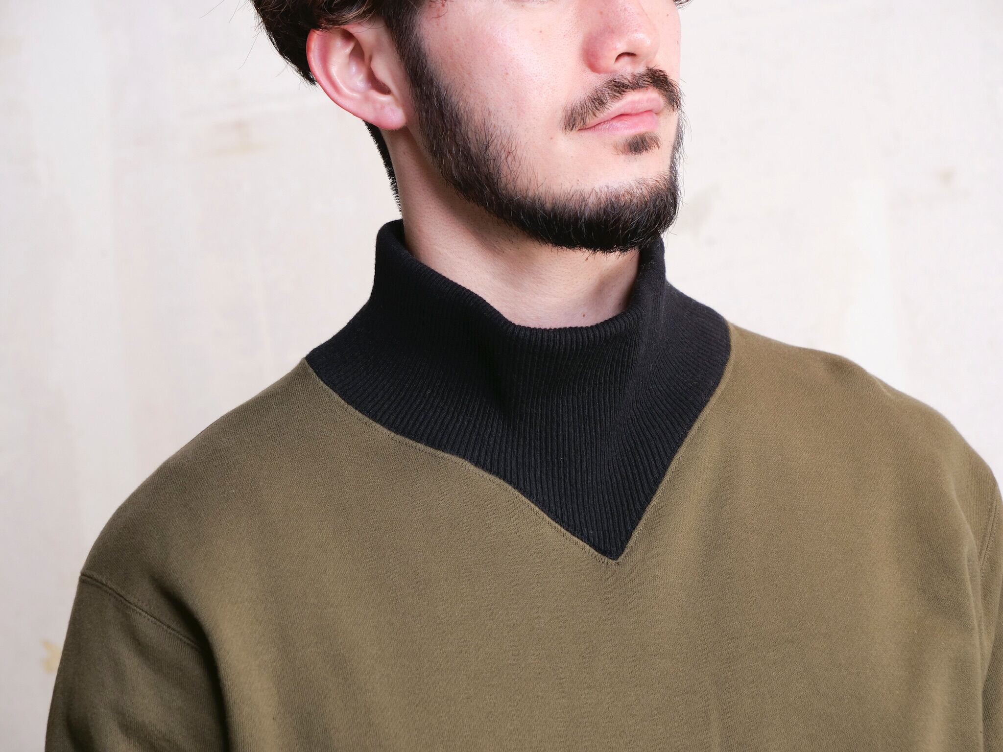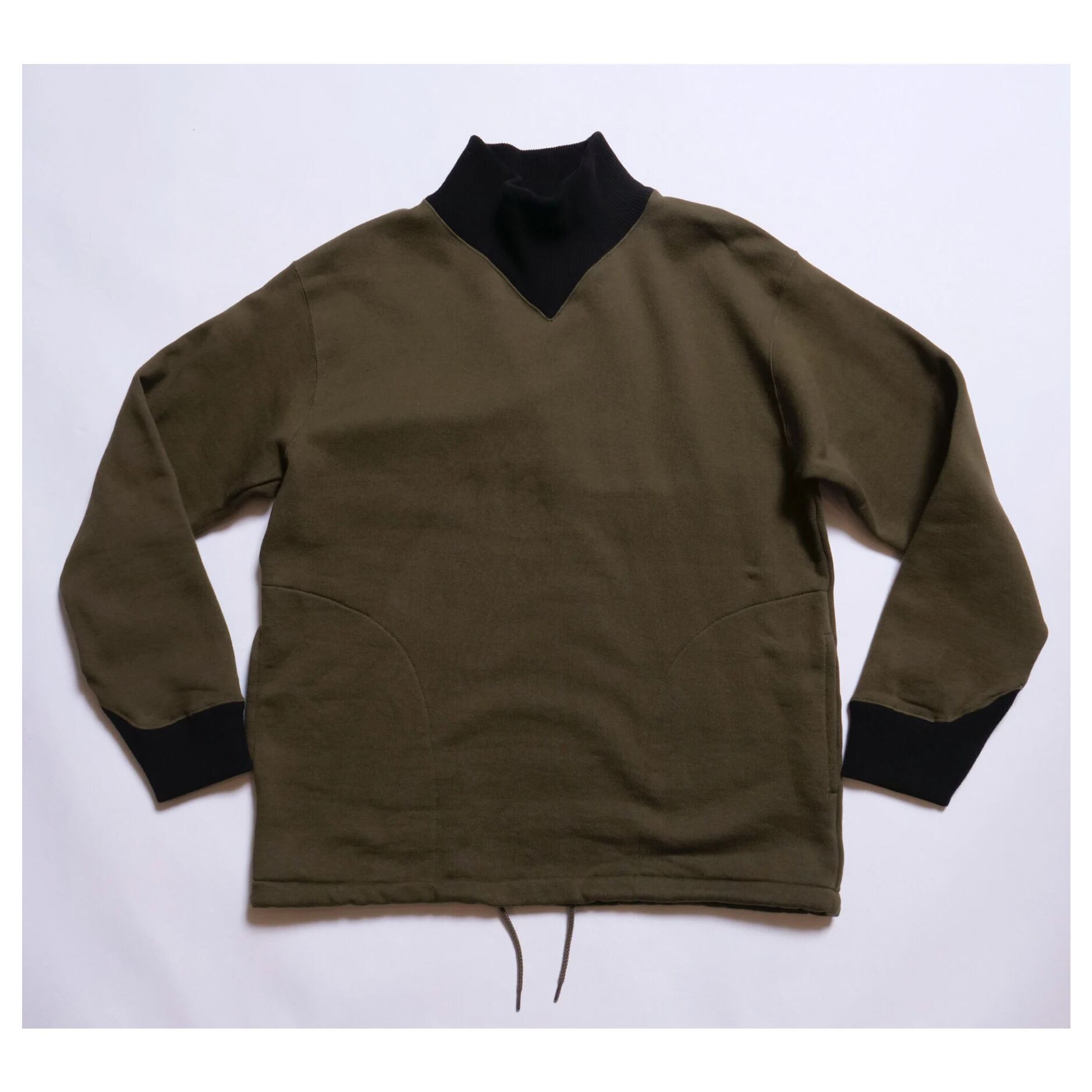 裏起毛の裏毛に置き換えた タートルネックプルオーバー。