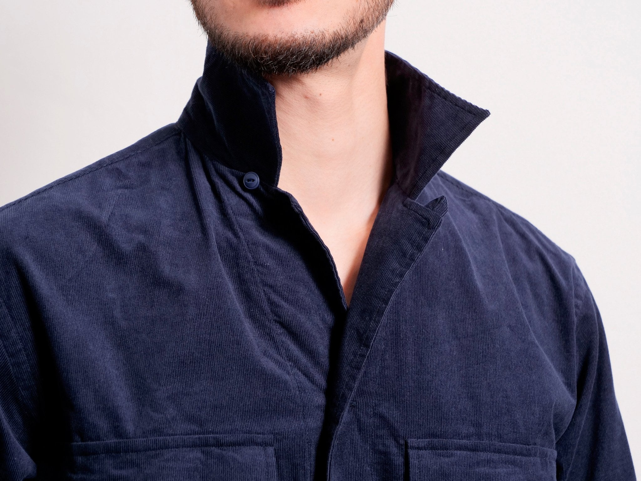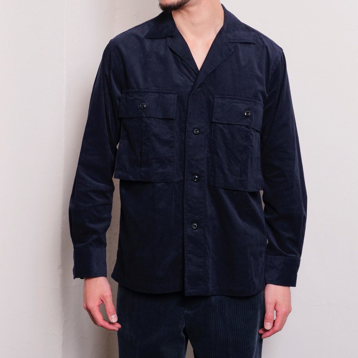 US ARMYのファティーグジャケットに付く大きなマチ付きポケットをシャツボディに載せたデザイン。コットン100%の細畝21ウェル シャツコーデュロイを使用。