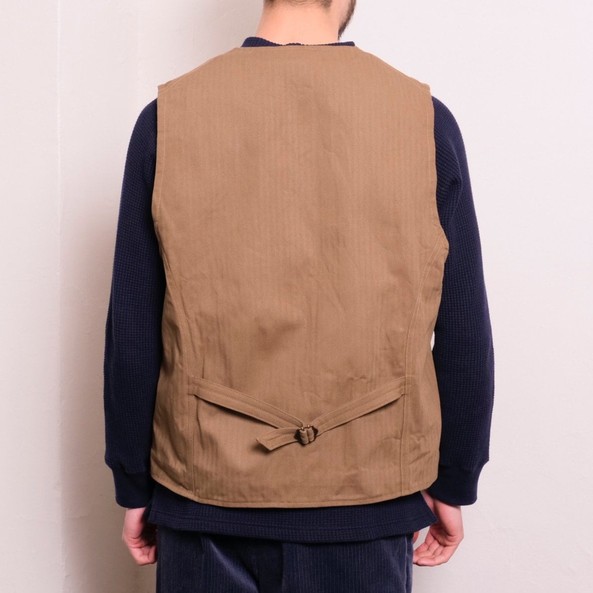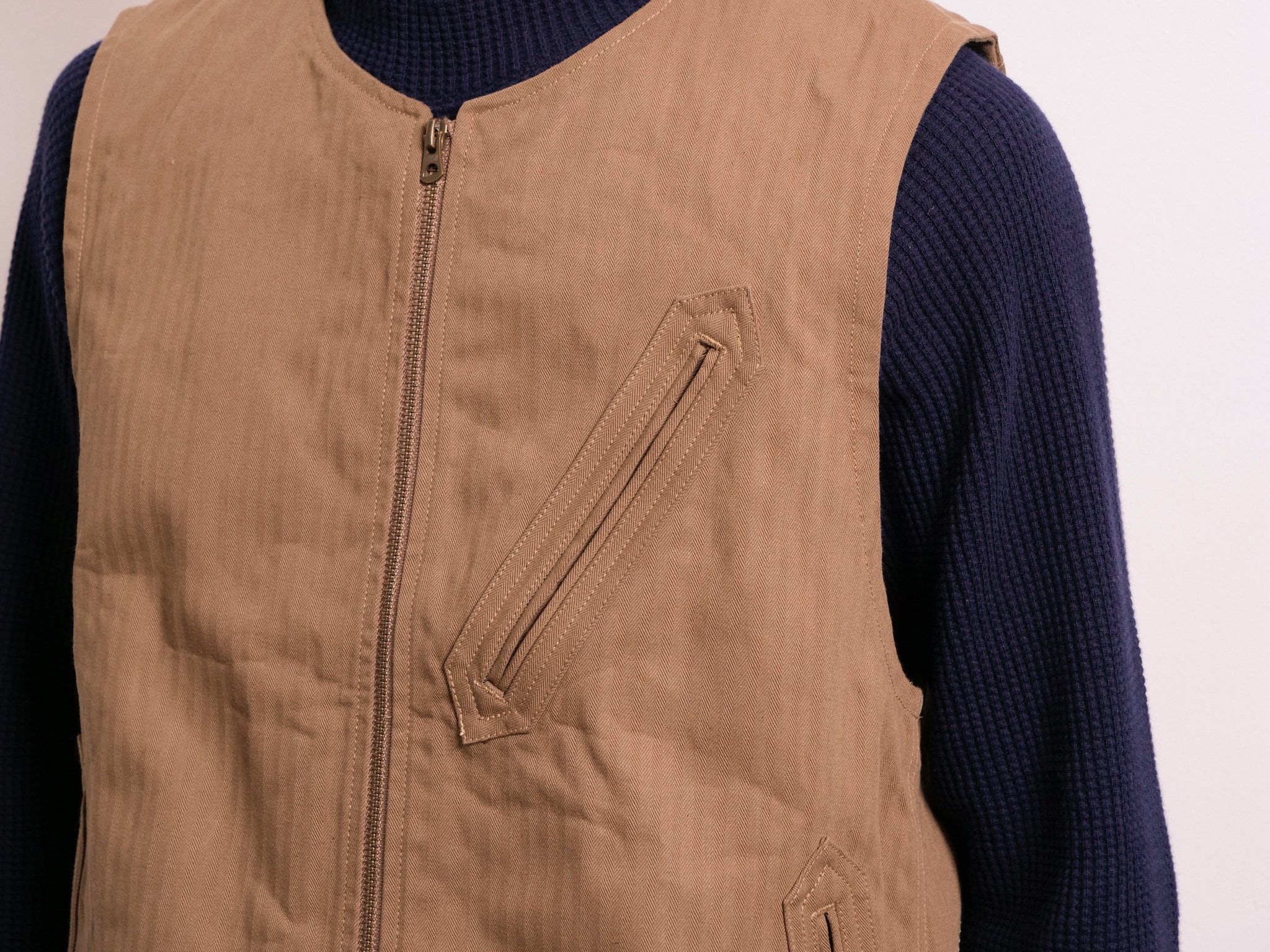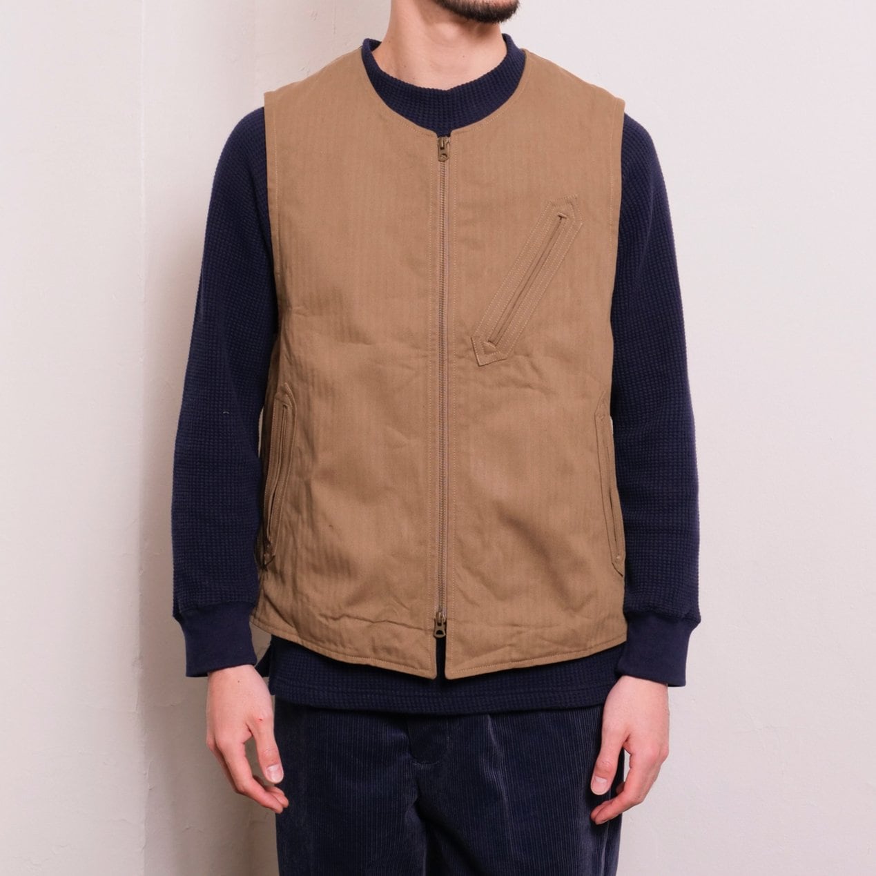イギリス軍のジャーキンと呼ばれるクルーネックのそれをイメージソースとしたミリタリーベスト。