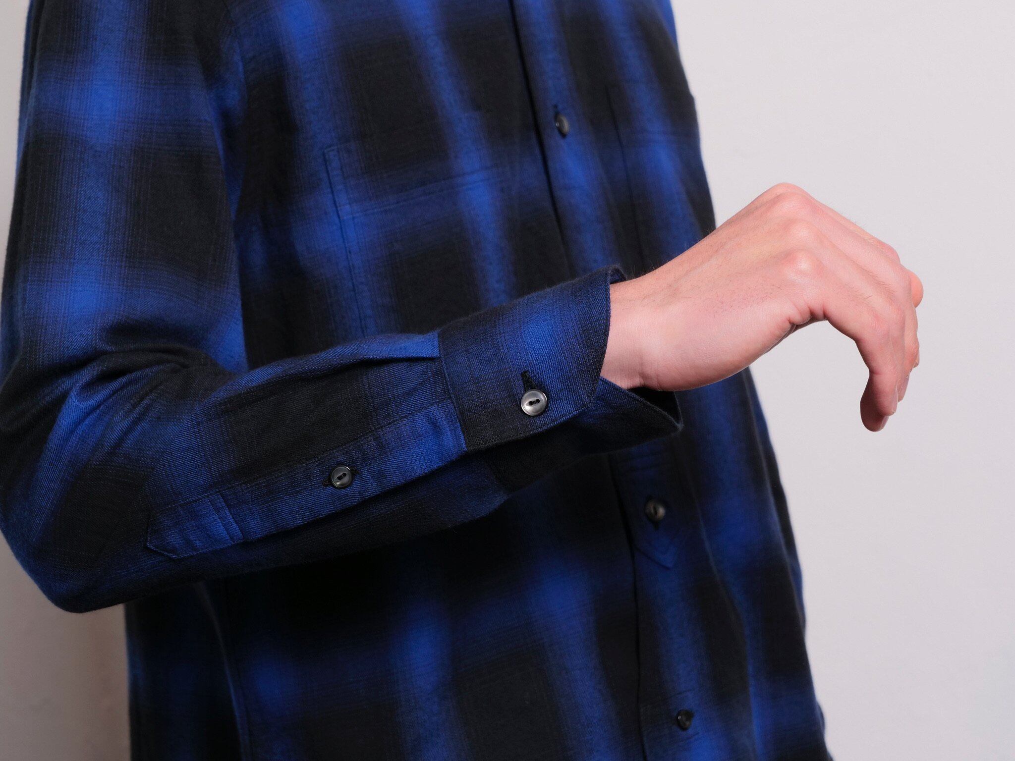 ドレスシャツとワークシャツの境目がなかった時代のそれをイメージし、両胸パッチポケット、ハーフプラケットなどクラシックな要素が詰まった定番バンドカラーワークシャツ。